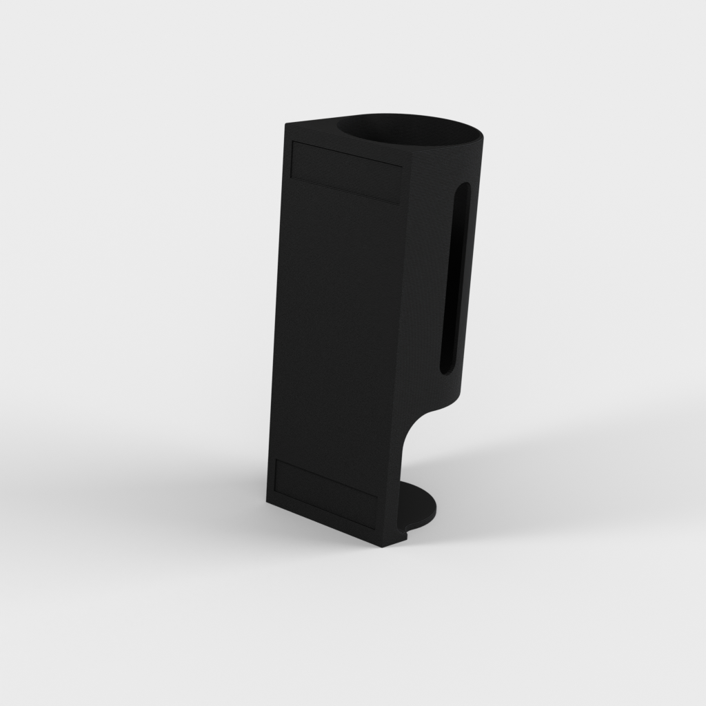 De houder is bedoeld om aan de zijkant van je Keurig koffiezetapparaat te worden gemonteerd, waardoor de K-cups gemakkelijk toegankelijk zijn en ruimte op het aanrecht wordt bespaard. Hij heeft inkepingen aan de achterkant die geschikt zijn voor bevestiging met 3M grijze dubbelzijdige tape (niet meegeleverd), wat zorgt voor een stabiele en discrete montage.