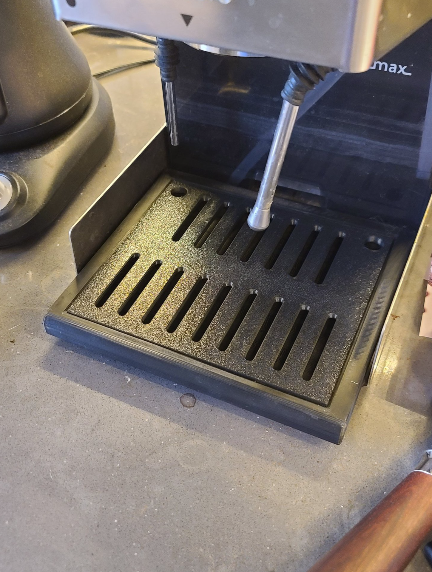 Gaggia Classic Long Short Drip Tray is 3D-printbaar zonder de noodzaak voor ondersteunende structuren en is compatibel met materialen zoals PETG, ABS of ASA voor duurzaamheid en hittebestendigheid.
