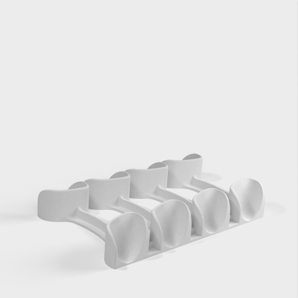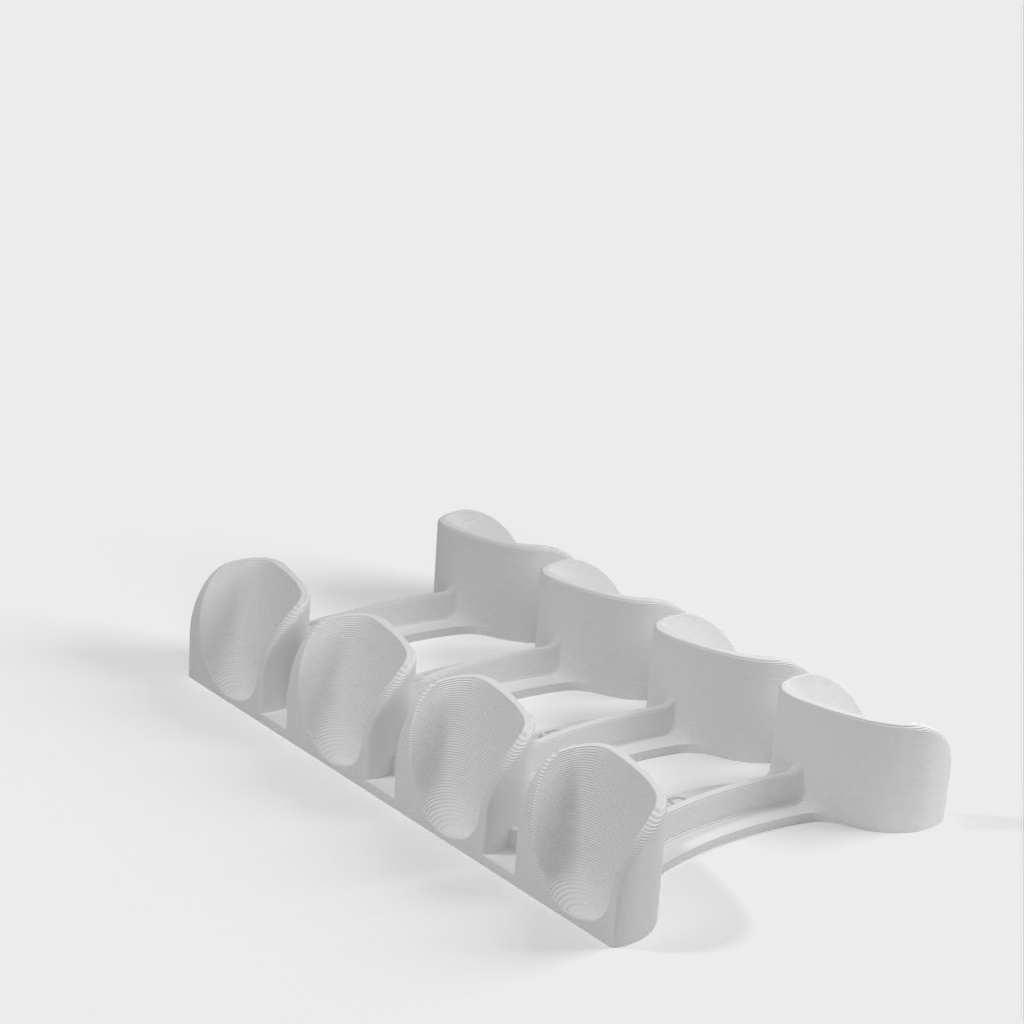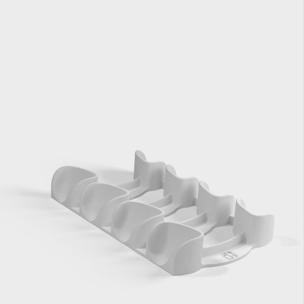 Dit is een horizontale standaard voor vier Nintendo Switch Pro-controllers. Hij is ruimtebesparend en past gemakkelijk in een lade, maar heeft ook ruimte voor meer controllers.