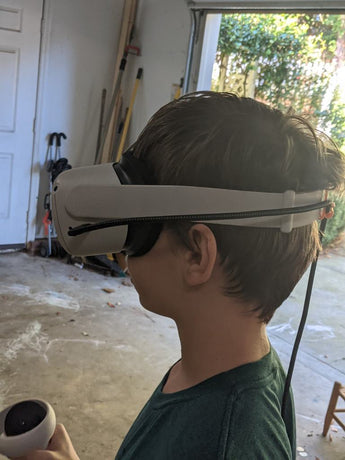 Deze Oculus-kabelhouder is ontworpen om je virtual reality-ervaring te verbeteren door de stroomkabel van je headset effectief te beheren. Door de kabel veilig langs je rug te leiden, voorkomt het dat de kabel om je armen draait of je bewegingen verstoort tijdens intense VR-sessies, zoals in Beat Saber. Dit zorgt voor een meer moeiteloze en boeiende ervaring, waarbij je je vrij kunt bewegen.