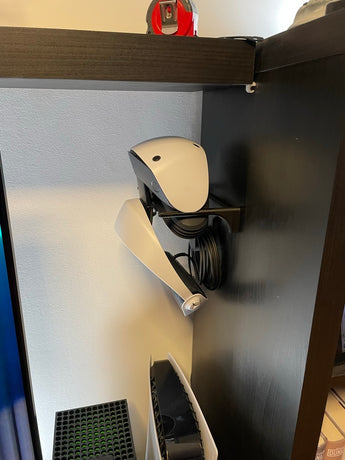 Deze hanger is ontwikkeld om een georganiseerde en veilige opbergoplossing te bieden voor uw PlayStation VR2 (PSVR2) HMD. Het helpt om uw virtual reality-headset op zijn plaats te houden wanneer deze niet in gebruik is en beschermt hem tegen onnodige stoten of beschadigingen.