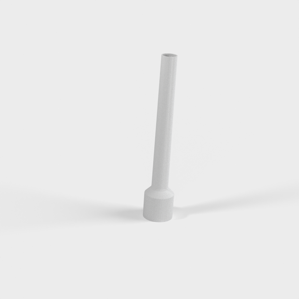 Dit is een ultralang en ultraslank stofzuigermondstuk dat is ontworpen om de dunne en diepe delen van uw auto schoon te maken, met name tussen de voorstoelen en de aandrijftunnel. Het bevat twee delen: het grootste deel is een onopvallend rond mondstuk (18 mm diameter aan de punt) en is zo lang mogelijk (197 mm in totaal), terwijl het tweede nog slanker is en in de punt van het eerste deel past, waardoor u een extra 50 mm ultradun mondstuk (6 mm) krijgt voor de kleine ruimtes bij de zijrails van de stoelen. De slangadapter van de stofzuiger is gemaakt voor een 1,25 inch.