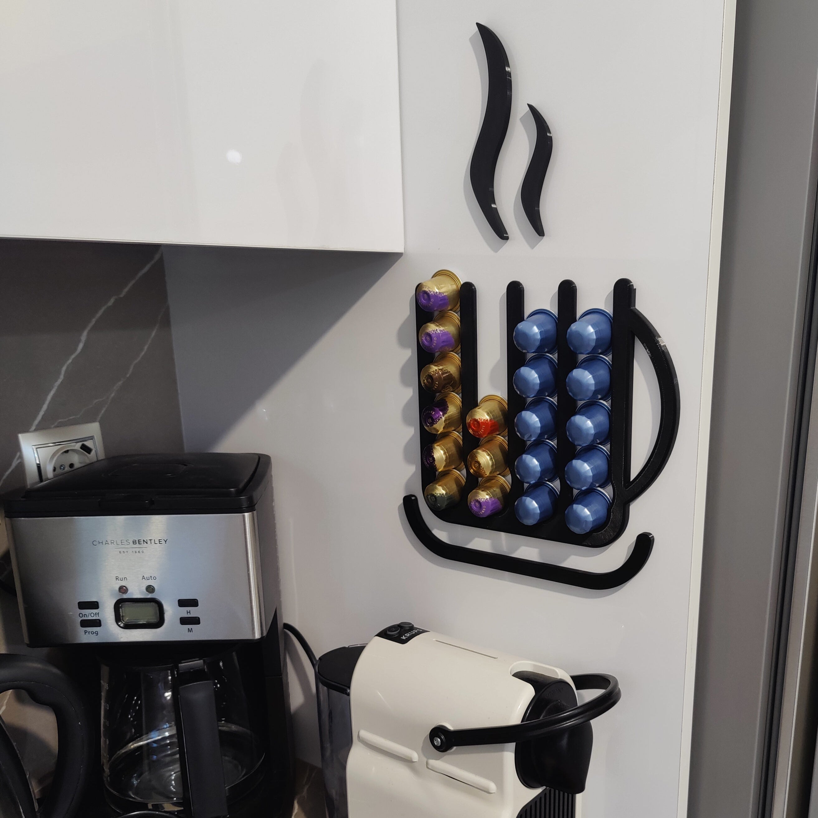 Aan de muur gemonteerde Nespresso capsulehouder in de vorm van een kopje (4 delen)