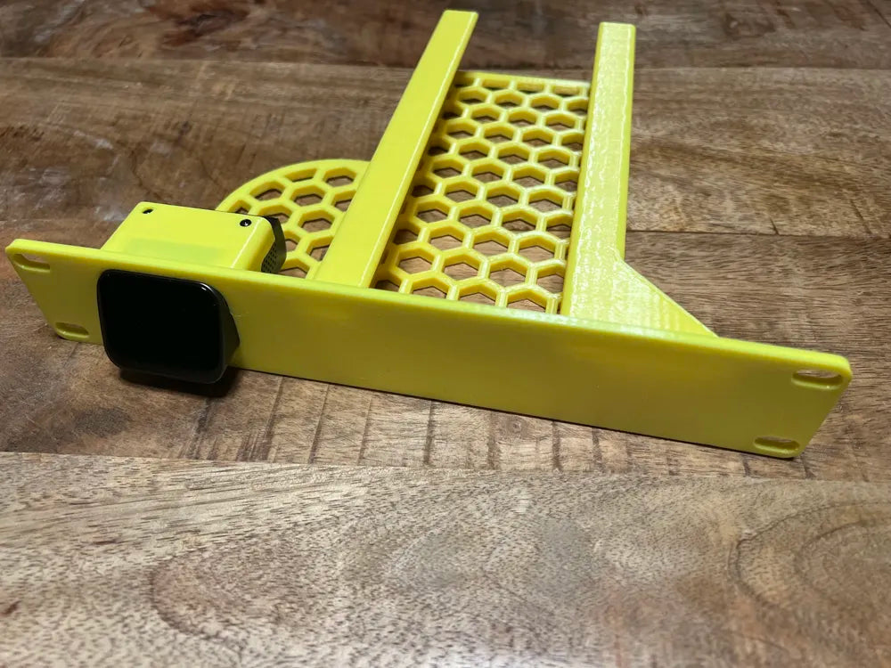 - Designet til montering af Ubiquiti Unifi USW-Ultra 210W strømforsyning og JetKVM i et 10-tommers rack.