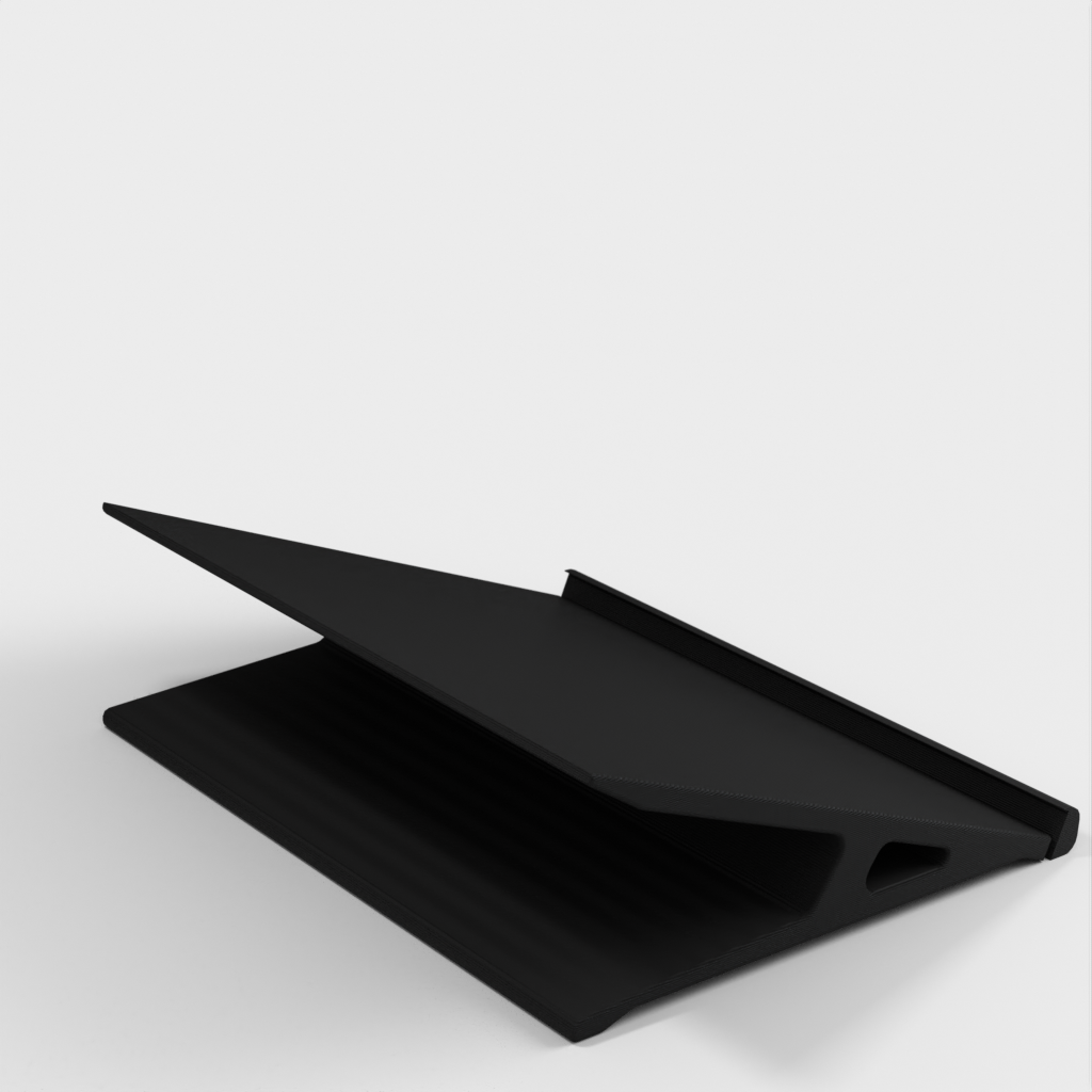 Dit is een houder voor uw 10' Sony Tablet Z. De houder is ontworpen om te fungeren als een vast aanraakscherm op uw thuiswerkplek via de Spacedesk-applicatie (https://spacedesk.net). De tablet is 20 graden gekanteld ten opzichte van de tafel om oogbewegingen te verminderen tijdens het typen op het toetsenbord en het lezen van het scherm (bijv. PDF).