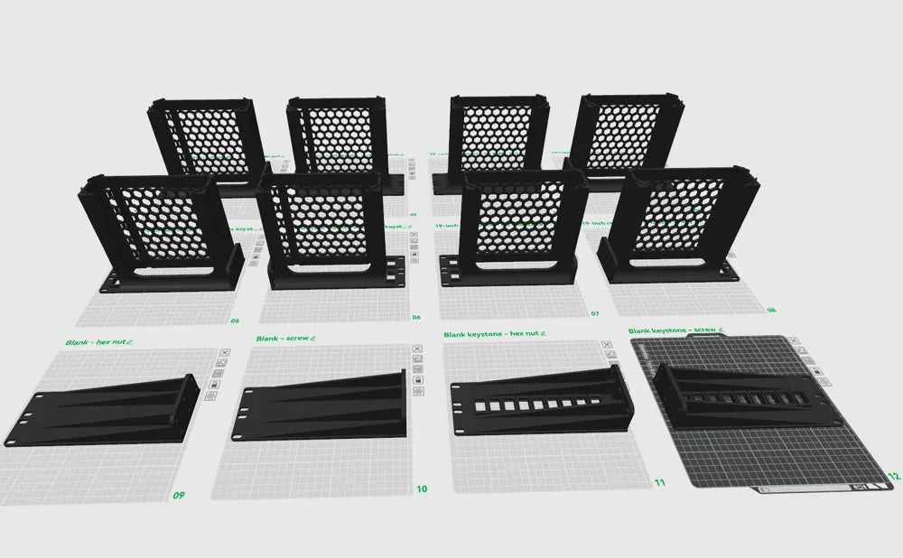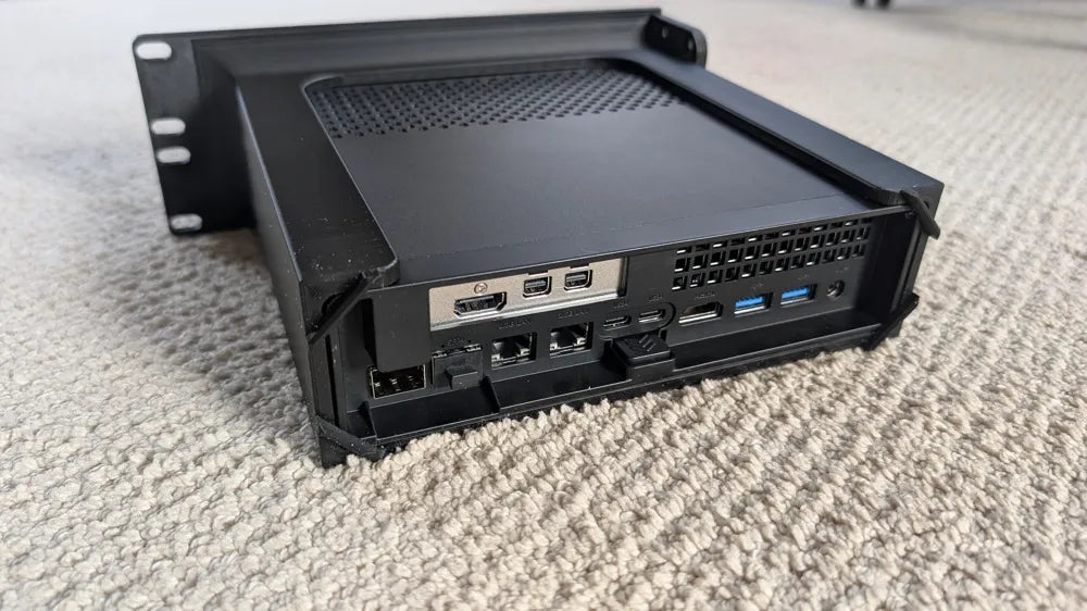Dette 19-tommer 2U rackbeslag er designet til at montere din Minisforum MS-01 sikkert i et serverkabinet. Løsningen understøtter forskellige konfigurationer med plads til gummifødder og keystone-stik, hvilket giver en organiseret installation. Det er ideelt til homelabs og sikrer stabil placering af din enhed.