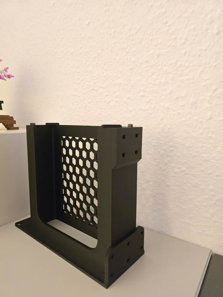 Dette 19-tommer rackbeslag organiserer to Minisforum MS-01 enheder i dit serverrack. Designet understøtter varmebestandigt materiale som PETG for sikker drift. Der findes versioner med plads til gummifødder eller keystone-stik for optimal kabelstyring. Montering kræver M5 møtrikker og skruer for stabil installation.