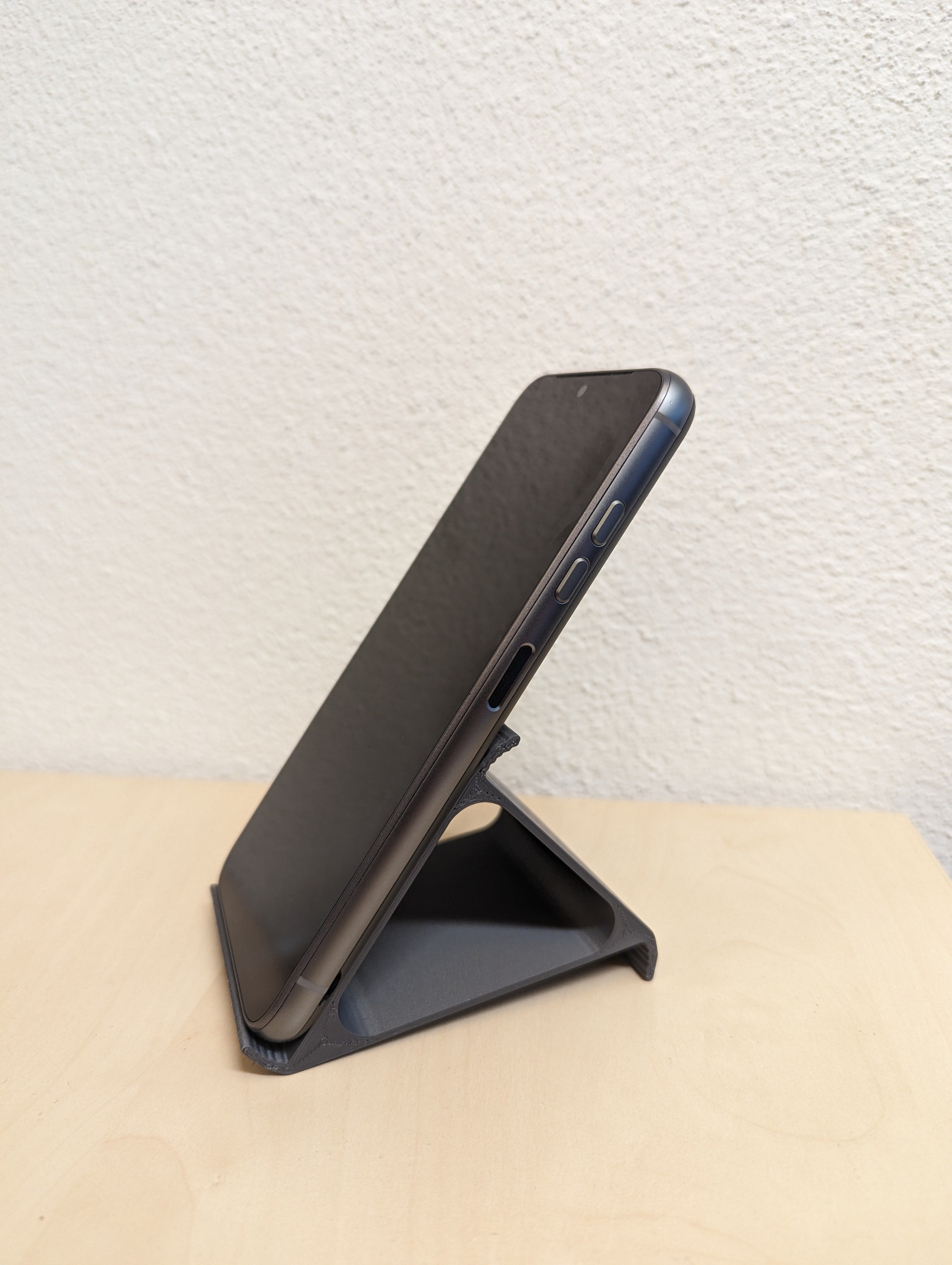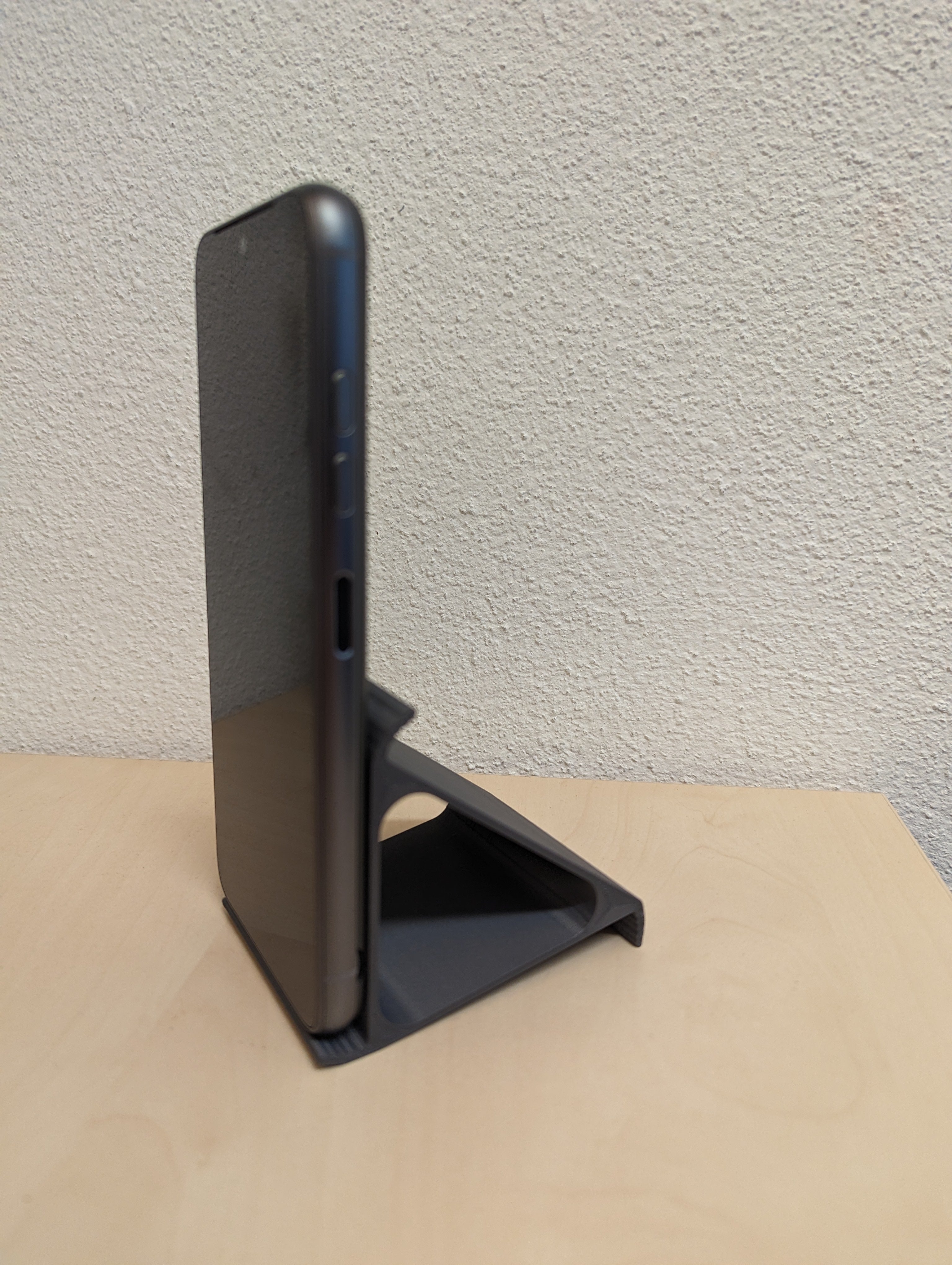Een smartphonestandaard met 3 hoeken die op drie verschillende manieren kan worden gebruikt. De eerste hoek maakt fotografie of video-opname van objecten op een oppervlak mogelijk. De tweede hoek is perfect voor 1-op-1 videoverbindingen, of voor het maken van foto's/video's van grotere objecten op een oppervlak. De derde hoek is ideaal voor groepsvideoverbindingen of voor foto's/video's van objecten aan de voorkant.