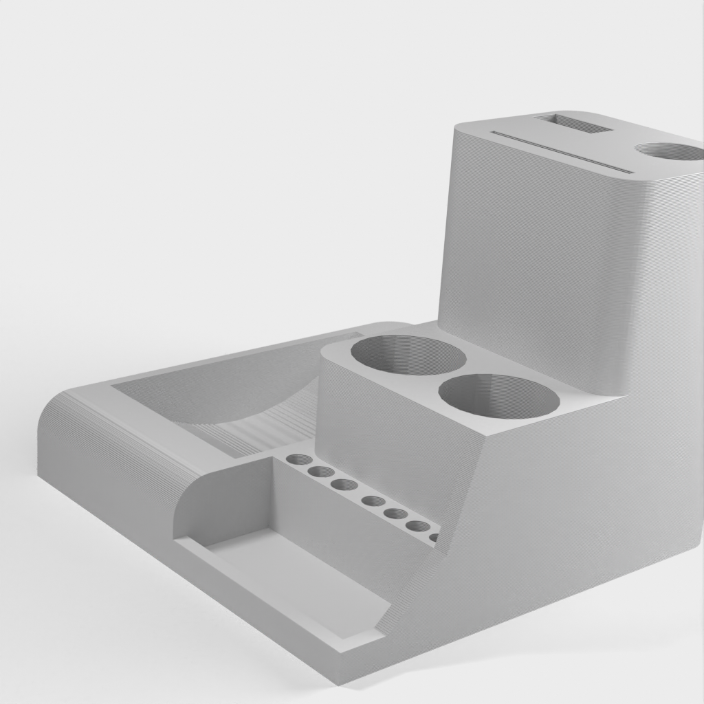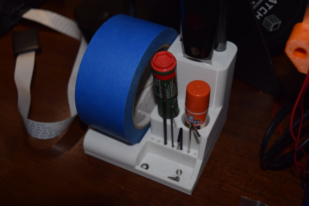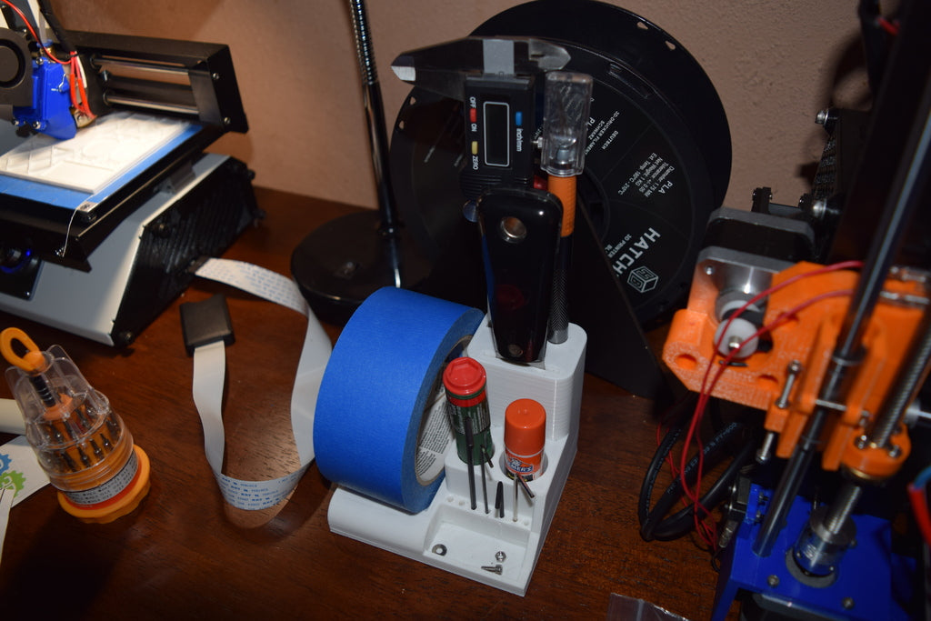 3D printer gereedschaphouder ontworpen om je gereedschap georganiseerd te houden. Geschikt voor een groot aantal voorwerpen, van een toorts, lijmstift of krazy glue tot een 38,2 mm brede schraper. Bovendien is de gereedschaphouder compatibel met zowel de Monoprice Mini Select als de Prusa I3 3D printers, waardoor het een veelzijdige aanvulling is op elke 3D printer setup. De totale afmetingen zijn 110mm x 110mm, wat betekent dat hij niet al te veel ruimte in beslag neemt.