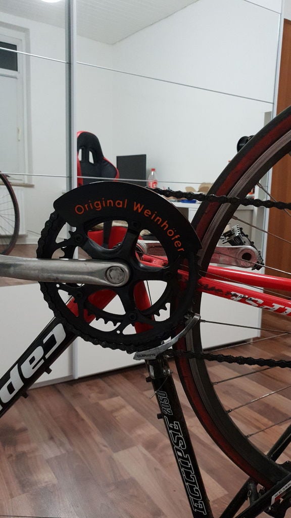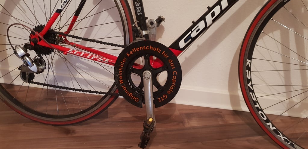 De 54 Teeth Chain Guard/Protection is een verstelbare kettingbeschermer ontworpen voor fietsen met 54 tanden, zoals de legendarische Capriolo GT2. De beschermer helpt om je fiets schoon en veilig te houden van kettingsvuil. Je hebt 5 stuks M3x10 schroeven en 5 stuks M3 moeren nodig voor de montage. De 54 Teeth Chain Guard/Protection is eenvoudig te installeren en kan worden aangepast aan het unieke ontwerp en de afmetingen van je fiets.