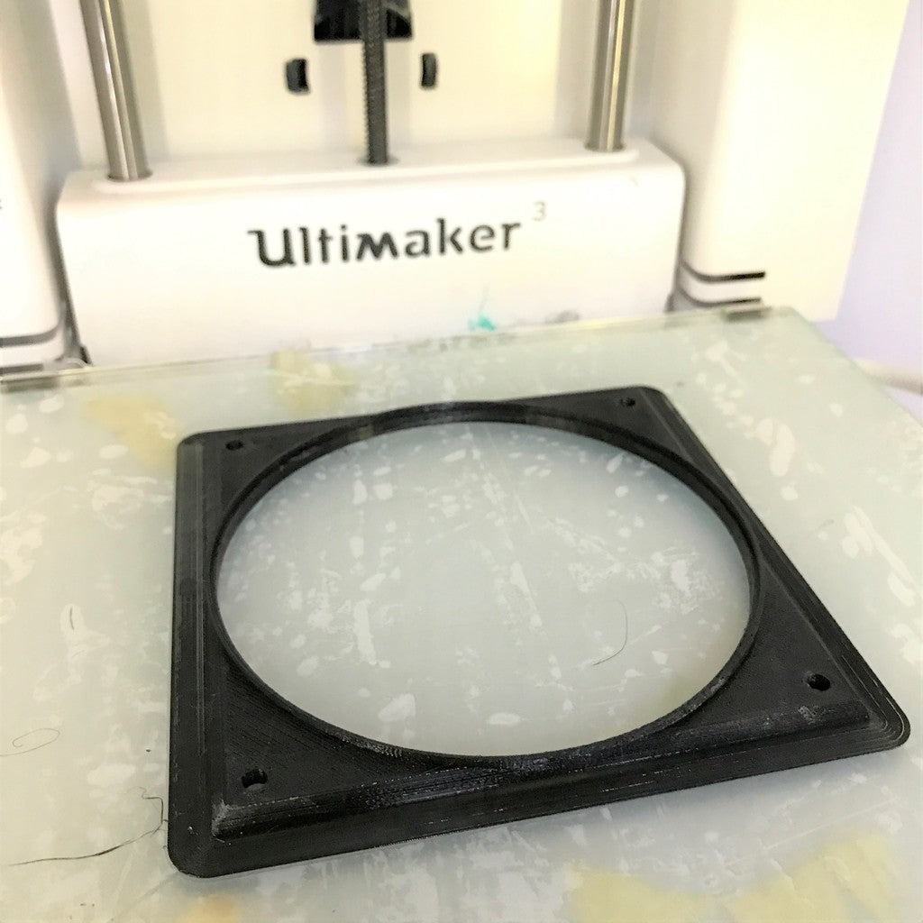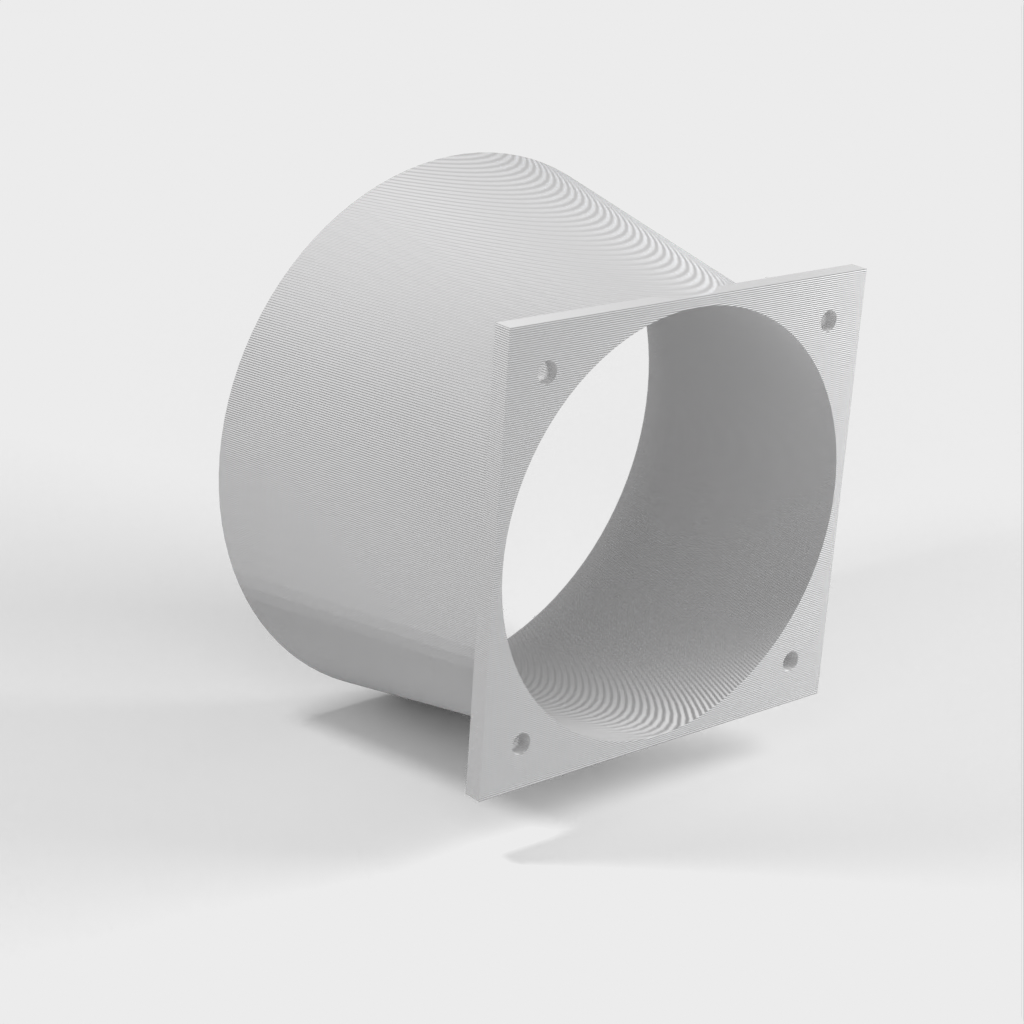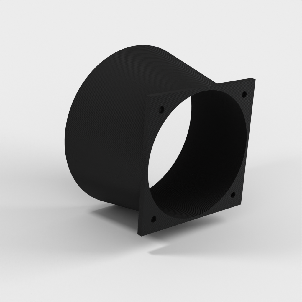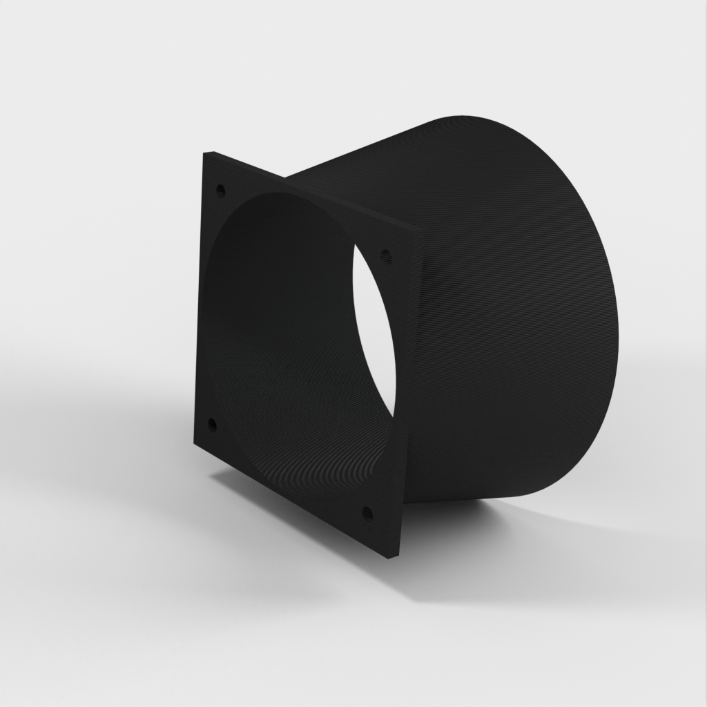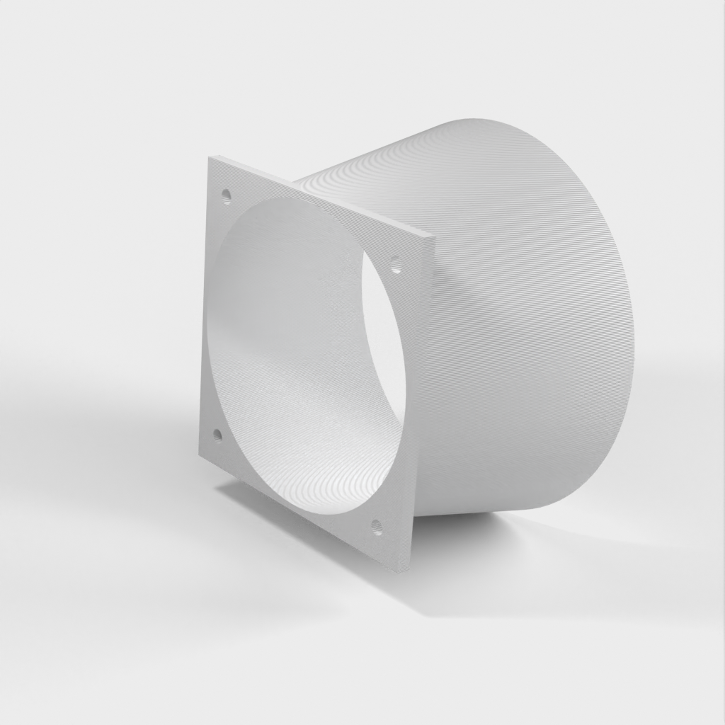 Zorg dat je genoeg ruimte hebt, want hij kan botsen met hoge ram-sticks. Dit 3D-model is in twee delen geprint: het 120mm-deel heeft een ring en het 92mm-deel heeft een kegel.Specificaties