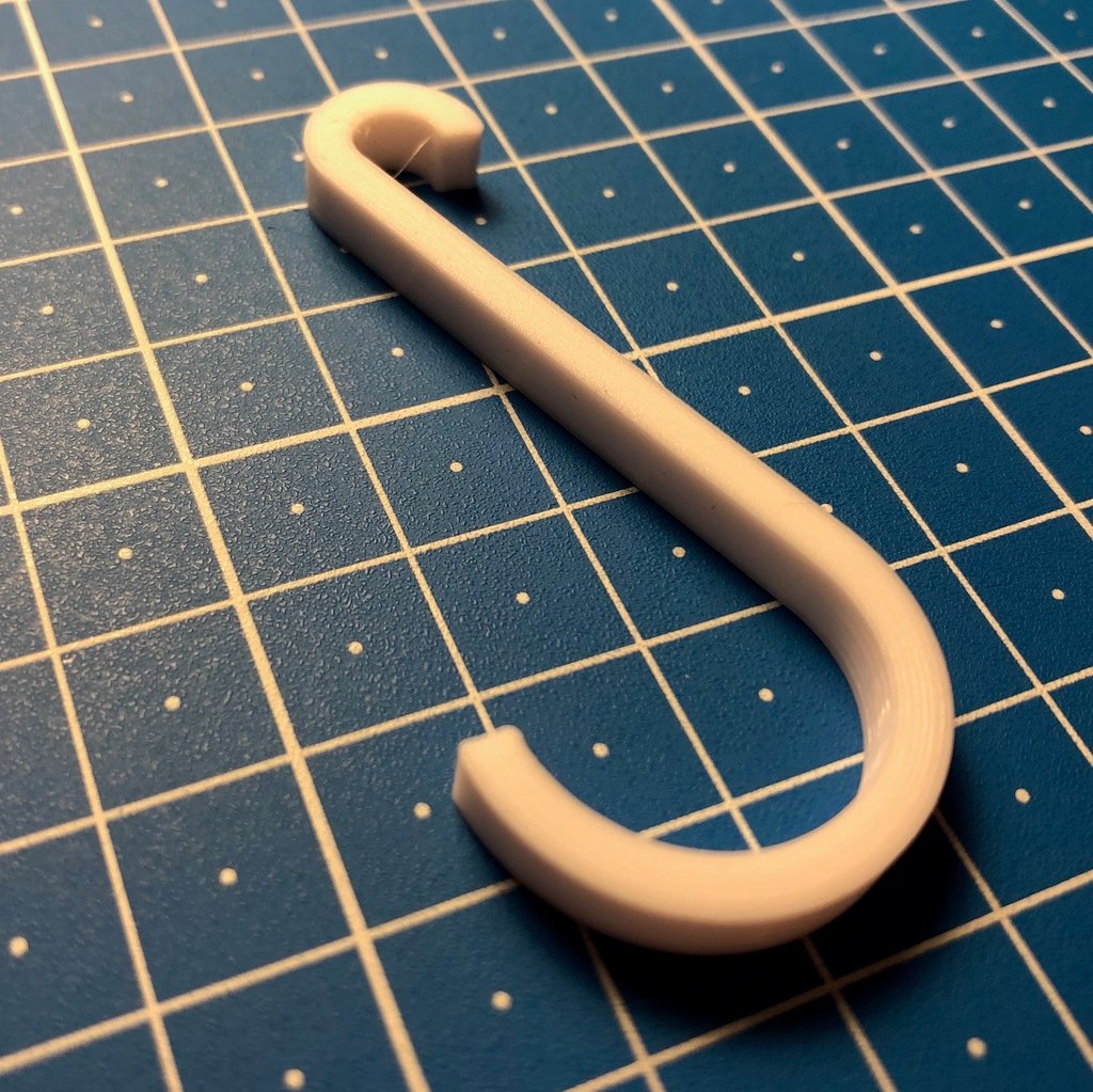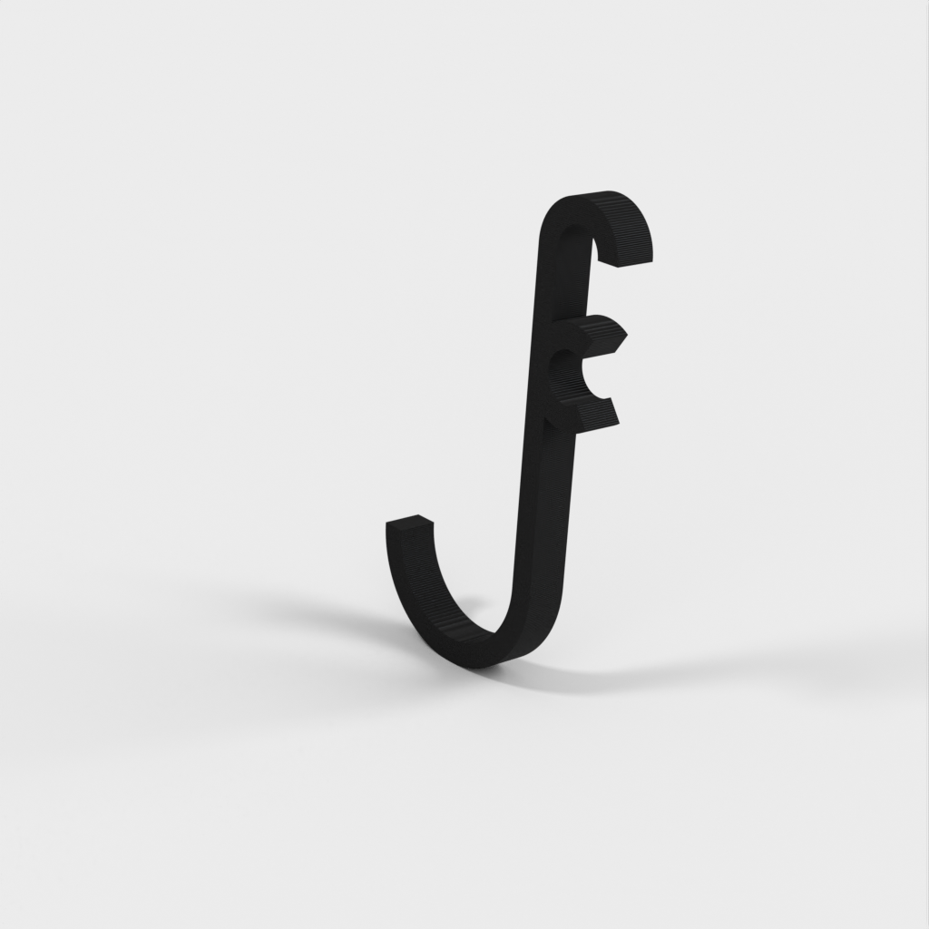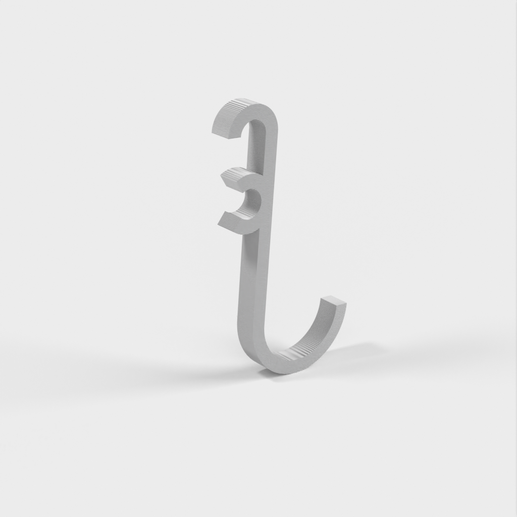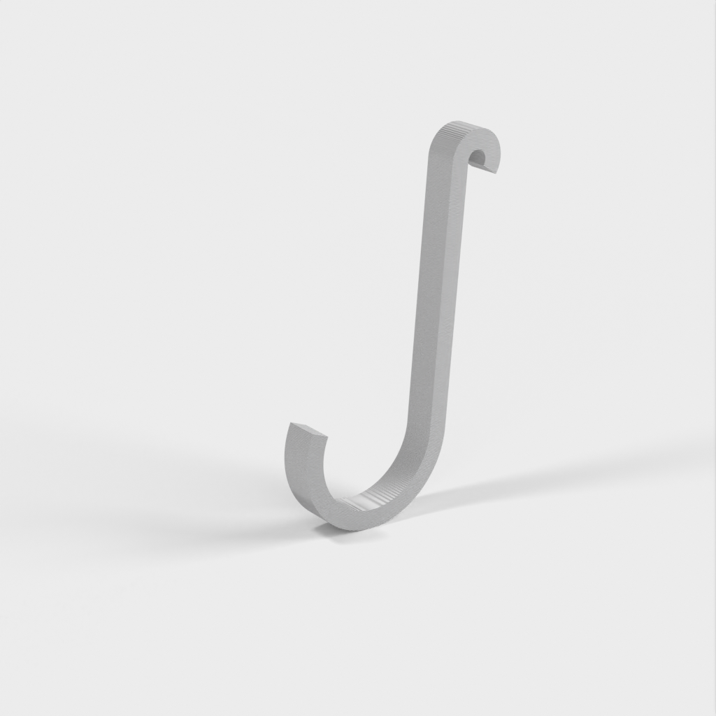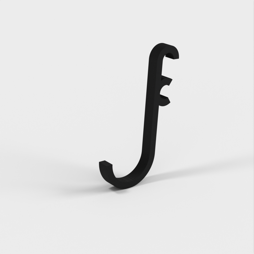 Een verstelbare haak die perfect past op de spijlen van de IKEA Omar plank. We gebruiken het om ons keukengerei aan op te hangen. De haak heeft een nauwsluitende pasvorm zodat hij er niet af valt of te veel verschuift bij het ophangen of pakken van spullen.