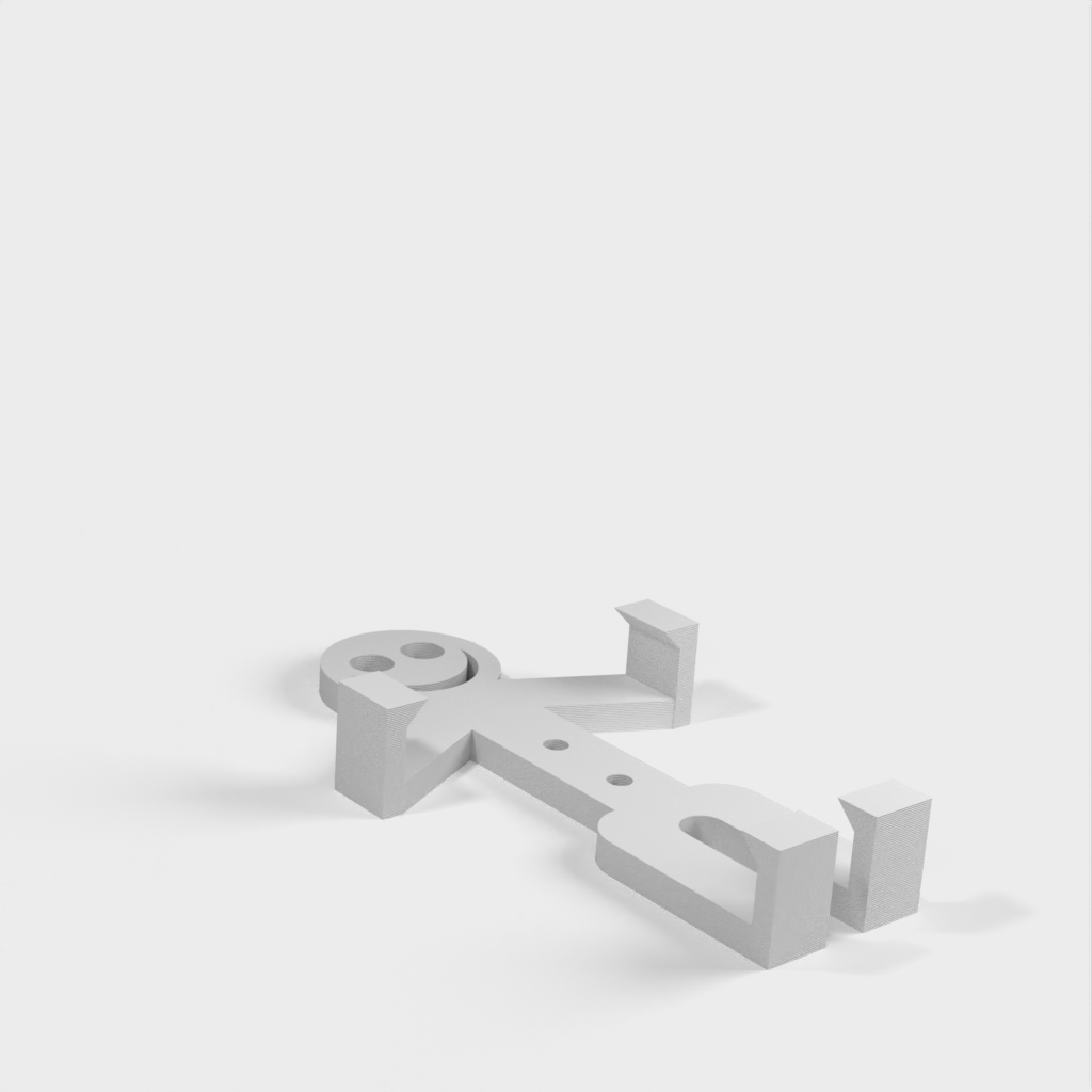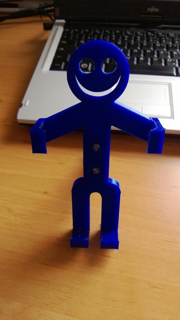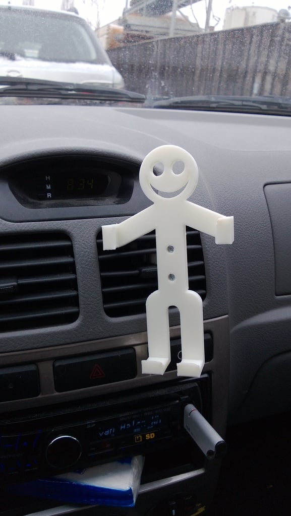 Aangepaste smartphonehouder in de vorm van een man voor verschillende smartphoneapparaten. De houder kan eenvoudig worden aangepast aan verschillende smartphoneformaten. Hij heeft twee verschillende adapters - een waarmee de figuur op het bureau kan staan en een die aan de ventilatie van de auto kan worden bevestigd. Er is ook een optie om je eigen adapters te maken door simpelweg een plaat te maken die op de achterkant van het figuur kan worden geschroefd.