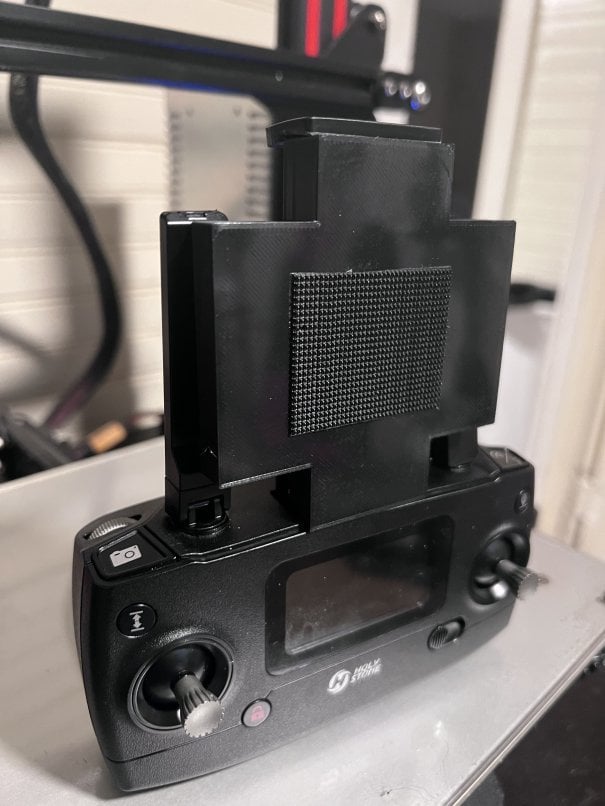 Adapter voor HolyStone HS720E dronecontroller. Als je telefoon niet goed op de controller past, kun je met deze adapter elke telefoonmaat plaatsen. Je hoeft alleen maar klittenband op zowel de controllerhouder, deze adapter en natuurlijk de achterkant van je telefoon te plaatsen. Als je dat liever hebt, kun je elastiekjes gebruiken.