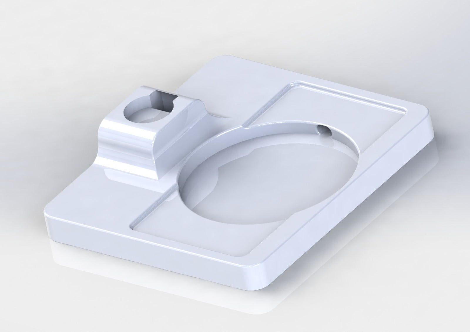 Dit product kan worden gebruikt als dockingstation voor Apple Watch-oplader, in combinatie met een draadloze Qi-oplader. Het ondersteunt opladers met een diameter tot 100 mm en is uitgerust met ingebouwde kabelgeleiders. Moet worden bedrukt met steun vanwege overhang in het kabelgeleidergebied.