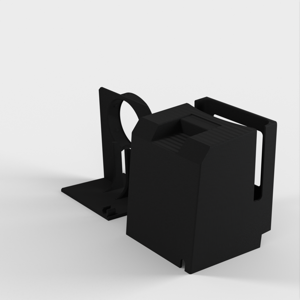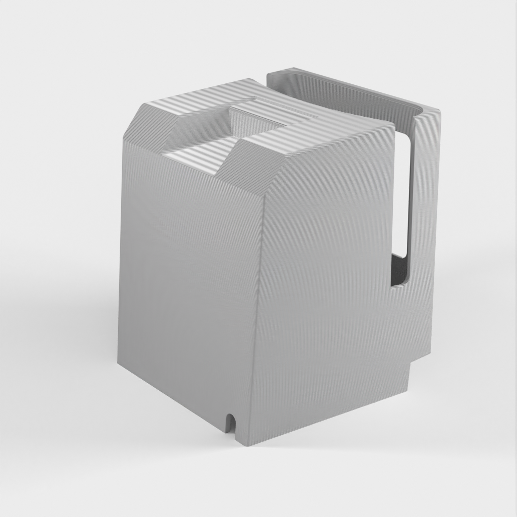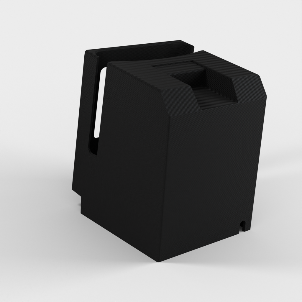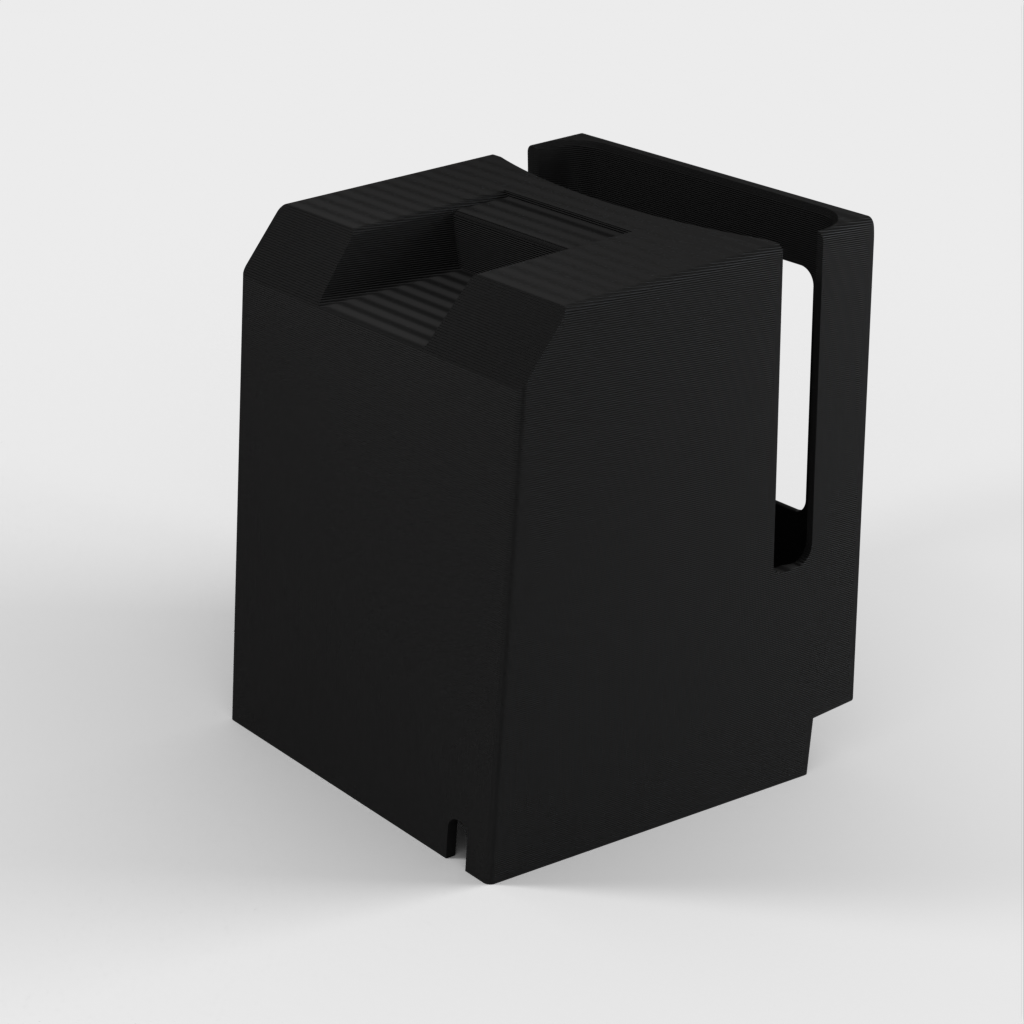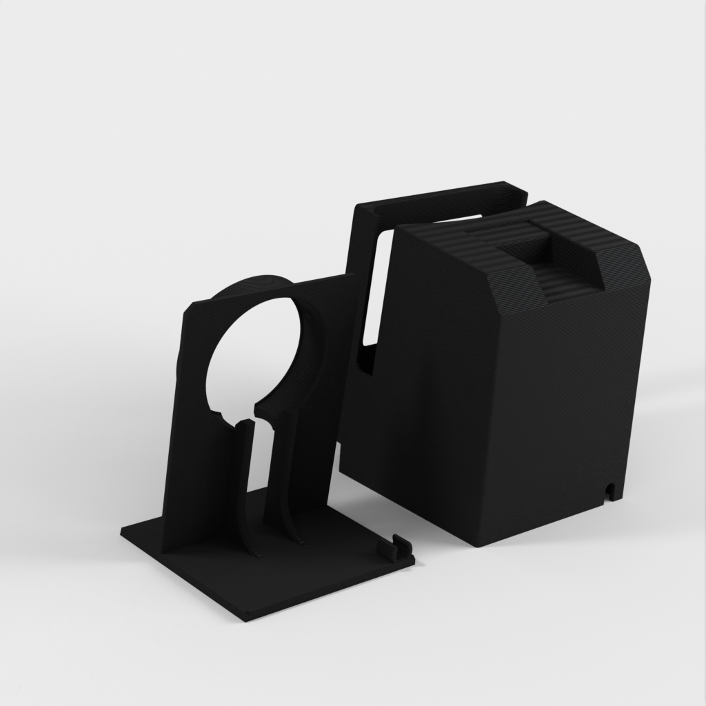 Apple Watch oplaaddock in klassieke Mac-stijl. Dit is een tweedelige oplaadstandaard voor de Apple Watch, waarbij deel 1 het draadloze oplaadmechanisme op zijn plaats houdt en deel 2 er bovenop schuift en een plek biedt om je Apple Watch neer te zetten. Aan de zijkanten van het omhulsel zitten sleuven die het horloge stevig bij het bandje houden, terwijl de magnetische oplader het horloge op zijn plaats houdt om op te laden. Het display loopt gelijk met het scherm van de Mac, zodat je het display kunt zien als het horloge in de nachtstand staat.