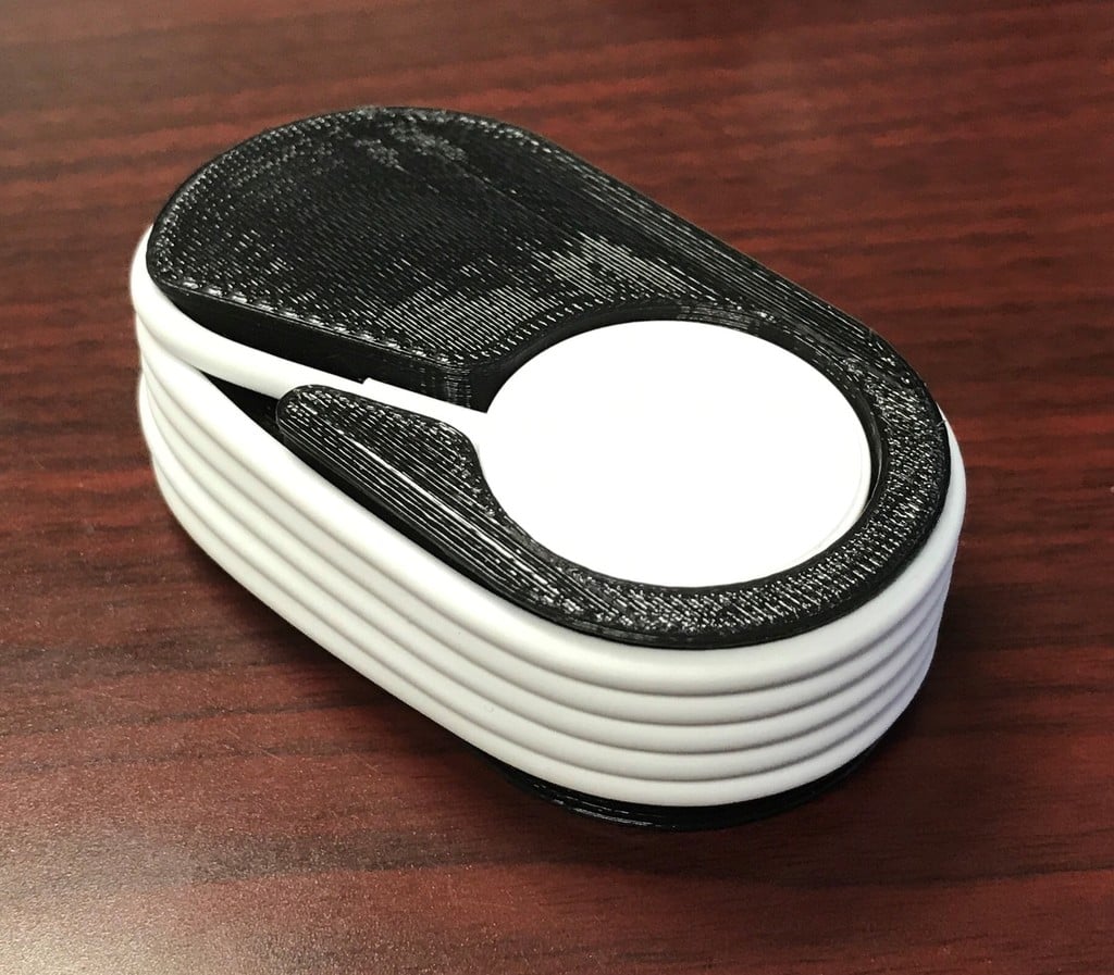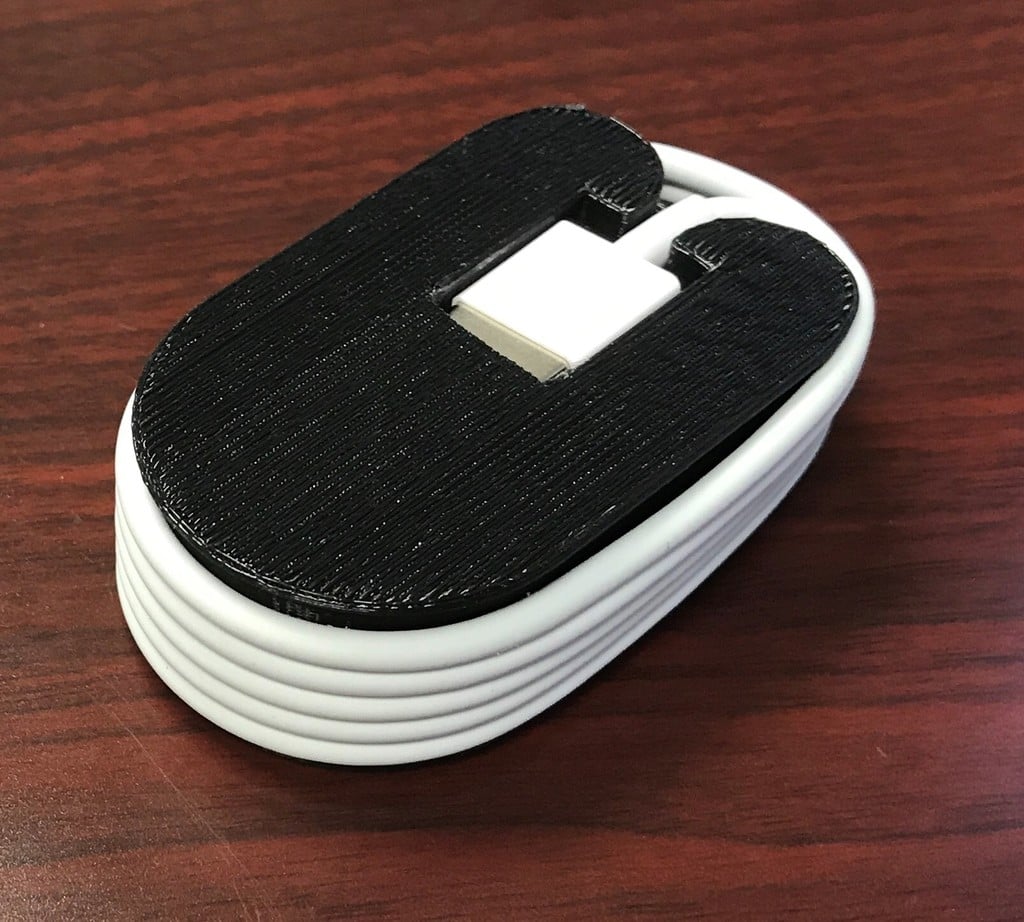 Dit is een houder voor de oplaadkabel van je Apple Watch. Met deze houder kun je de oplader netjes opbergen als je hem niet gebruikt. Het is een eenvoudige en praktische oplossing om je bureau of nachtkastje netjes te houden.