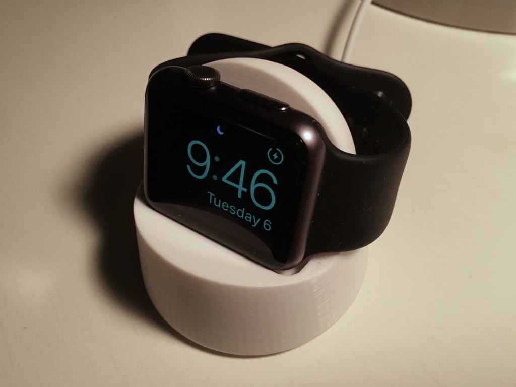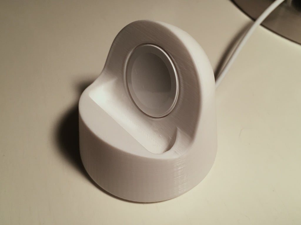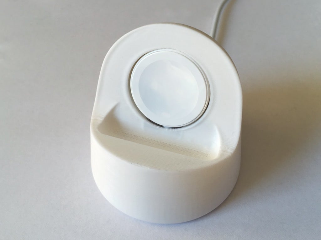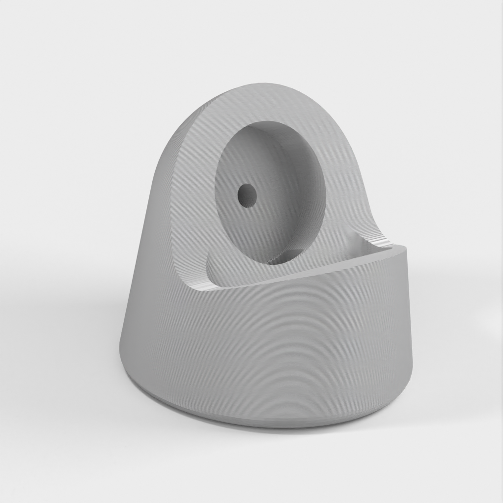 Dit is een dock voor het opladen van je Apple Watch. Het is zo ontworpen dat de hoofdcurve iets afwijkt van de raaklijn en de oplaadcilinder 0,5 mm groter is voor een lossere pasvorm. Het dock heeft slechts één kabelkanaal dat U-vormig is in plaats van driekwart rond. Bovendien zit er een gat van 5 mm in de achterkant zodat je de oplader gemakkelijk kunt verwijderen. Op basis van feedback is er ook een versie met een dieper kabelkanaal en een gat van 20 mm aan de achterkant toegevoegd. De 'Big USB' versie past op Apple Watch versie 6 kabels