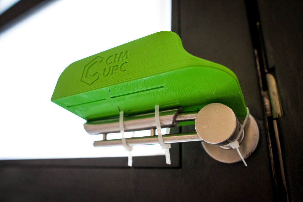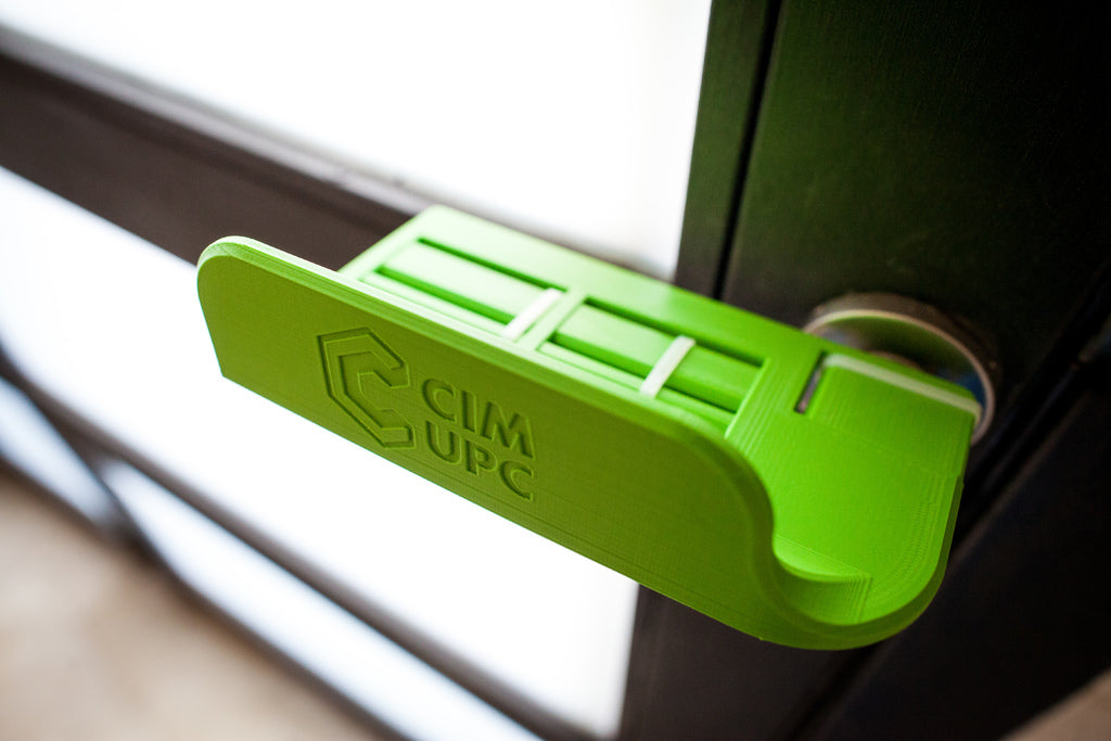 Deuropener - COVID-19 is een op zichzelf staande deuropener die ontworpen is om het risico op besmetting met COVID-19 te verminderen. Dit apparaat kan eenvoudig worden gemaakt met een desktop 3D-printer en worden gemonteerd met slechts 3 kabelbinders. De Arm Door Opener kan worden aangepast voor verschillende deurklinken en is eenvoudig te monteren. Het is beschikbaar voor zowel rechts- als linksdraaiende deuren en kan in minder dan een minuut worden geïnstalleerd. Dit product is ideaal voor openbare ruimtes in gebouwen, ziekenhuizen, werkcentra of winkels waar het risico op virusoverdracht via deurklinken groot is.