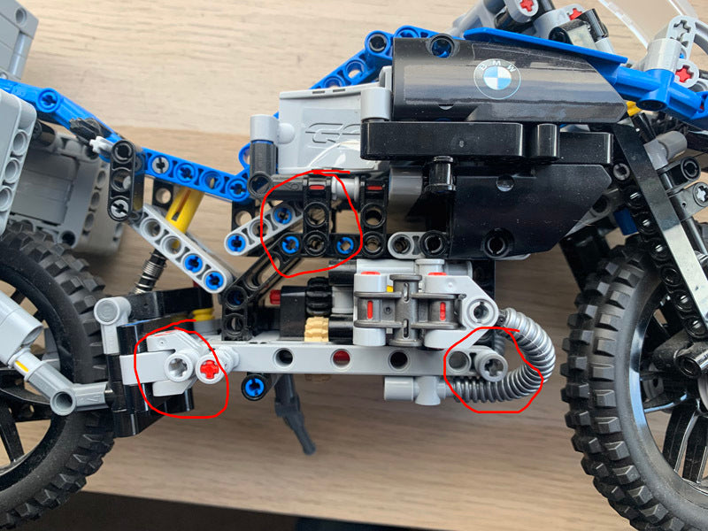 De steun heeft twee korte Lego Technic assen nodig en een Lego Technic Pin (3673) die het model op drie plaatsen aan de steun bevestigt. Er zijn geen aanpassingen nodig aan het model zelf.