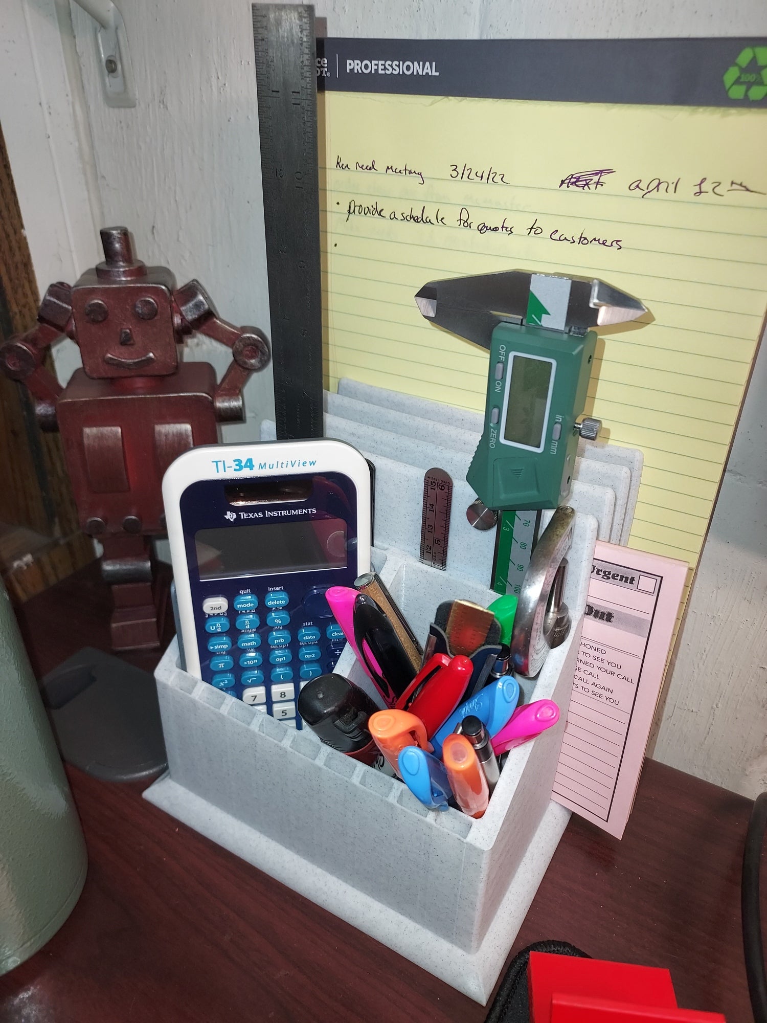 De bureauorganiser helpt je bureau schoon en georganiseerd te houden. Je kunt er noodzakelijke dagelijkse spullen in opbergen, zoals papieren, mappen, weeginstrumenten en andere kleine benodigdheden. Hij is ontworpen om een micrometer en schuifmaat in op te bergen voor eenvoudig meten en precisiewerk. Dit accessoire houdt je bureau opgeruimd en georganiseerd en zorgt ervoor dat je essentiële spullen altijd binnen handbereik zijn.