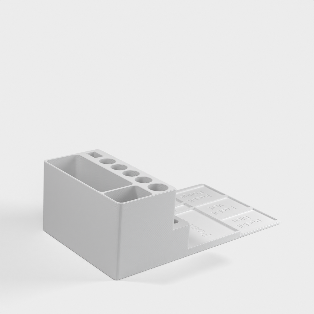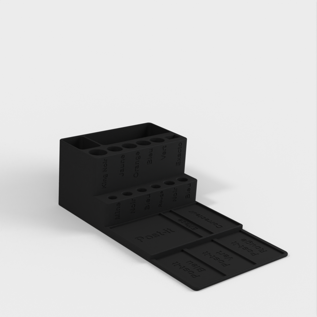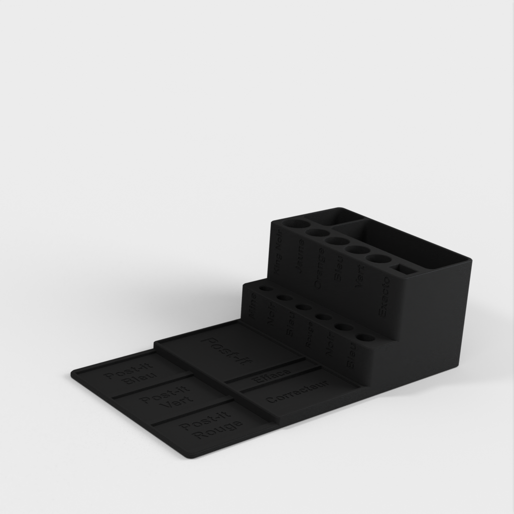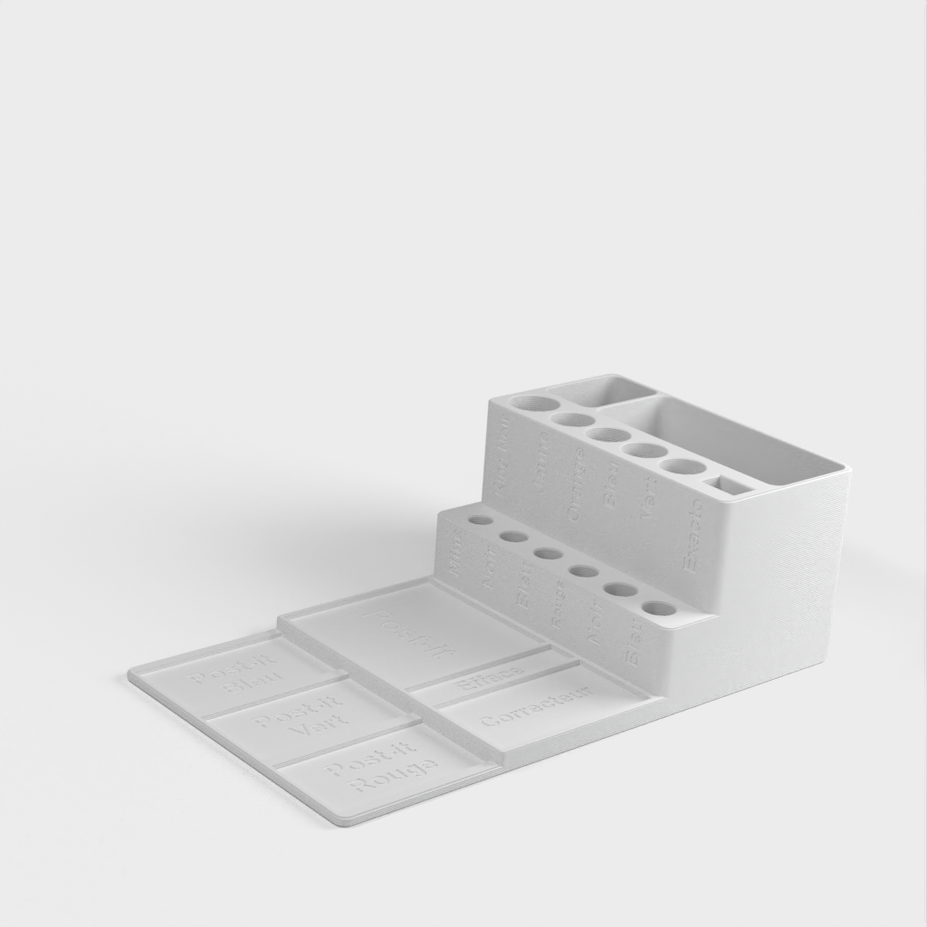 Dit is een bureau-organizer ontworpen om je dagelijkse kantoorgerei efficiënt te organiseren. Deze organizer biedt opbergruimte voor verschillende tools zoals pennen, potloden, markers en andere schrijfwaren die essentieel zijn voor dagelijks gebruik op kantoor. Houd je bureau netjes en opgeruimd en verhoog je productiviteit door je kantoorbenodigdheden binnen handbereik te houden.