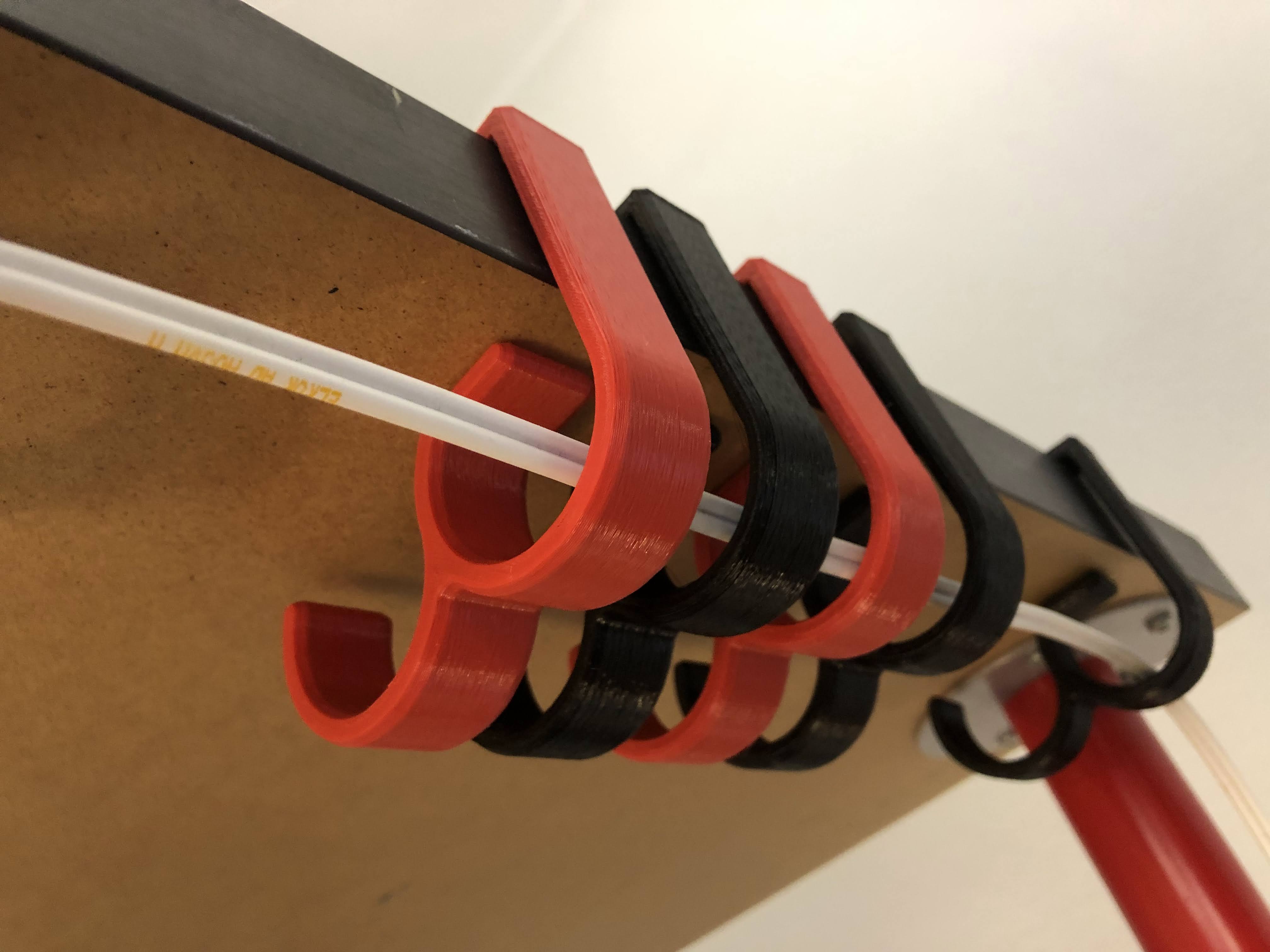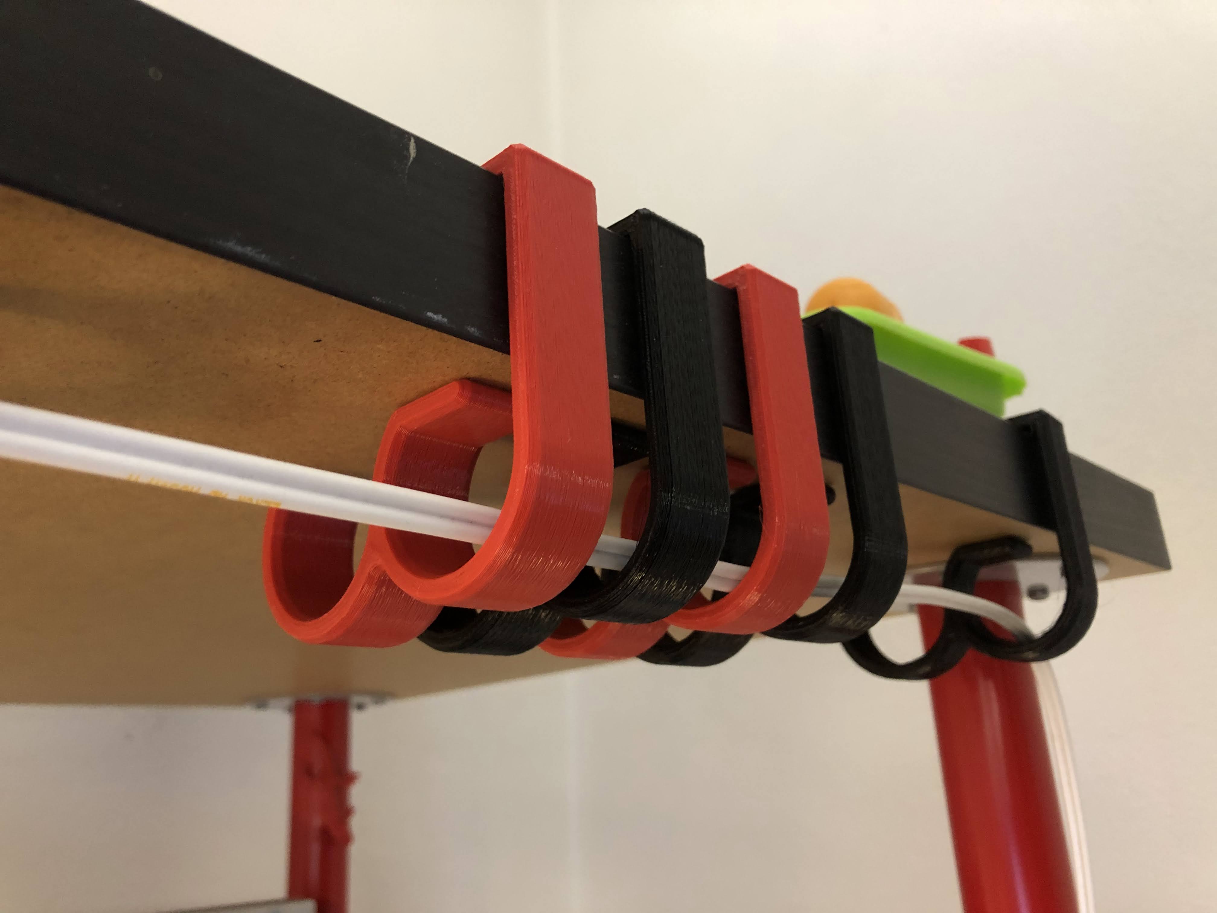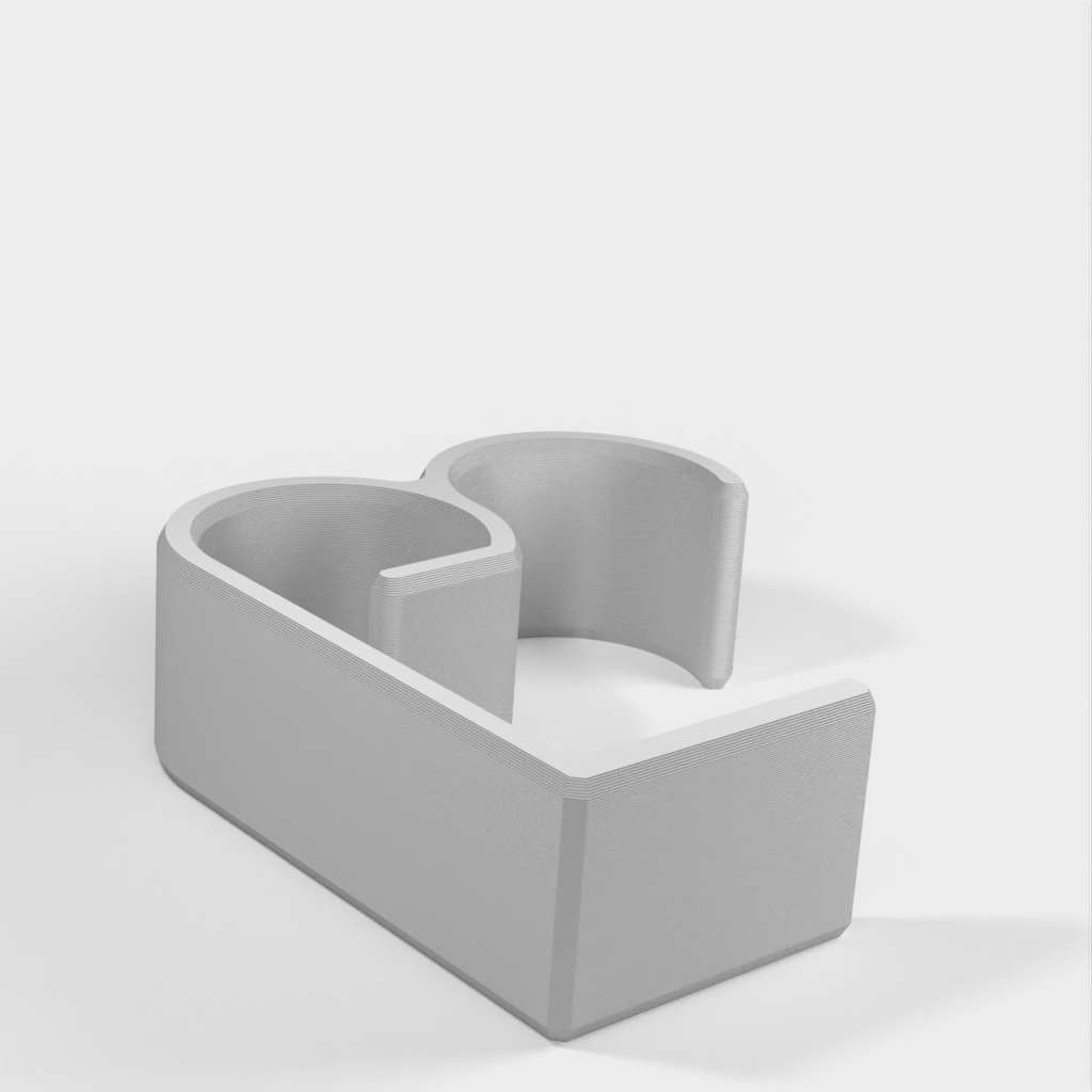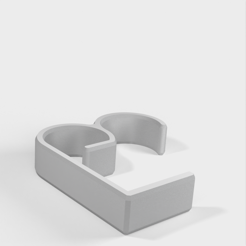 Een set modellen om te helpen bij je kabelbeheer. Deze clips zijn ontworpen om op bureaus of tafels te plakken. De clips zijn oorspronkelijk gemaakt voor Ikea Linnmon werkbladen, maar zijn volledig compatibel met Lagkapten en Målvakt werkbladen, evenals andere werkbladen of bureaus die 50mm (~2') dik zijn. Het ene model heeft een gesloten ring wanneer het gemonteerd is, terwijl het andere model een extra gedeeltelijk open ring heeft waarmee je gemakkelijk kabels kunt toevoegen of verwijderen. Beide modellen zijn verkrijgbaar met een breedte van 20mm en 30mm, maar andere breedtes kunnen eenvoudig worden gemaakt door de maat in je snijprogramma aan te passen.
