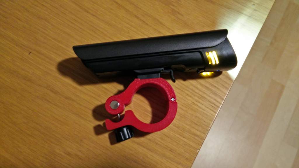 De Degbit fietslichthouder is een houder die is ontworpen om de DEGBIT-fietslamp (60 lux voorlichtpakket) te monteren op een stuur met een diameter van ~32 mm. Hierdoor kan een van de rubberen inzetstukken nog steeds worden gebruikt. De clip en het sluitmechanisme van de lamp kunnen eenvoudig van de originele klem naar de geprinte klem worden verplaatst. Het enige extra accessoire dat nodig is, is een M3-schroef voor het scharnier.