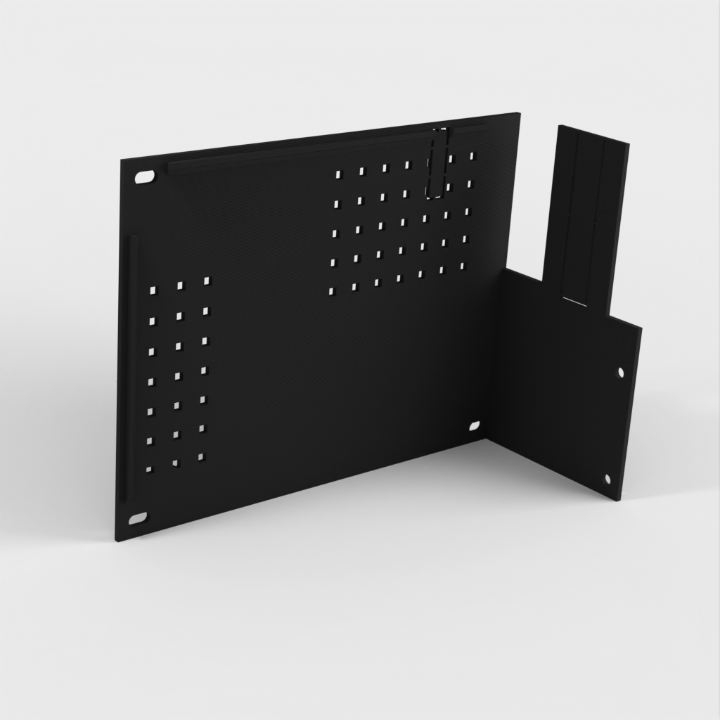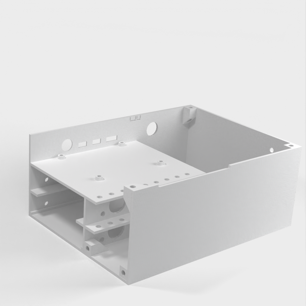 Desktopbehuizing voor Raspberry Pi 4B met ingebouwde ruimte voor een 5V 4A-voeding en maximaal 2 SATA-schijven. Er is ook opslagruimte voor uw eigen apparatuur.