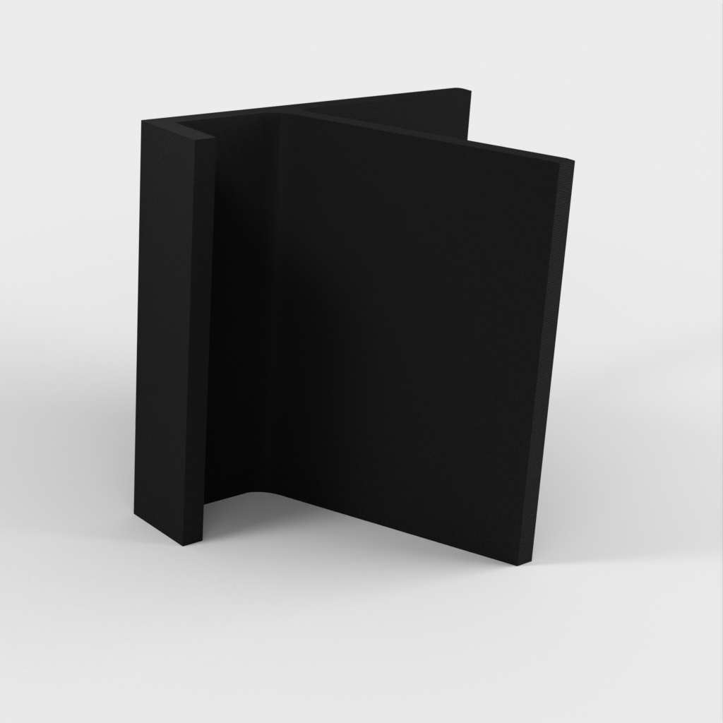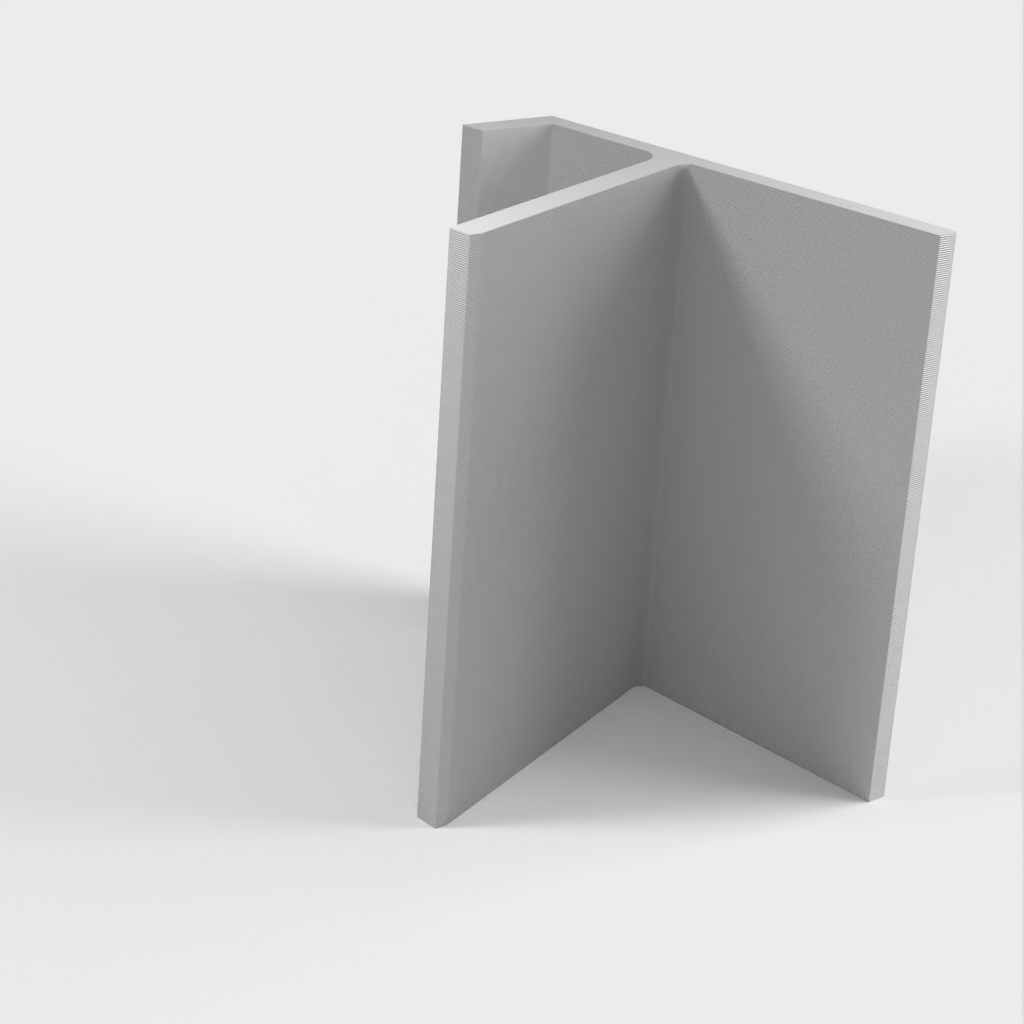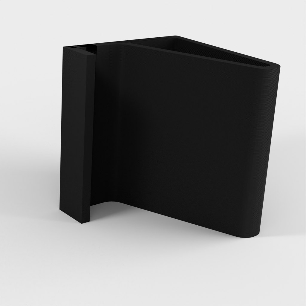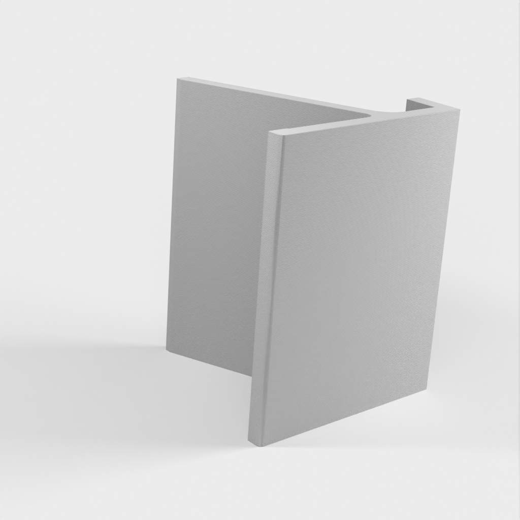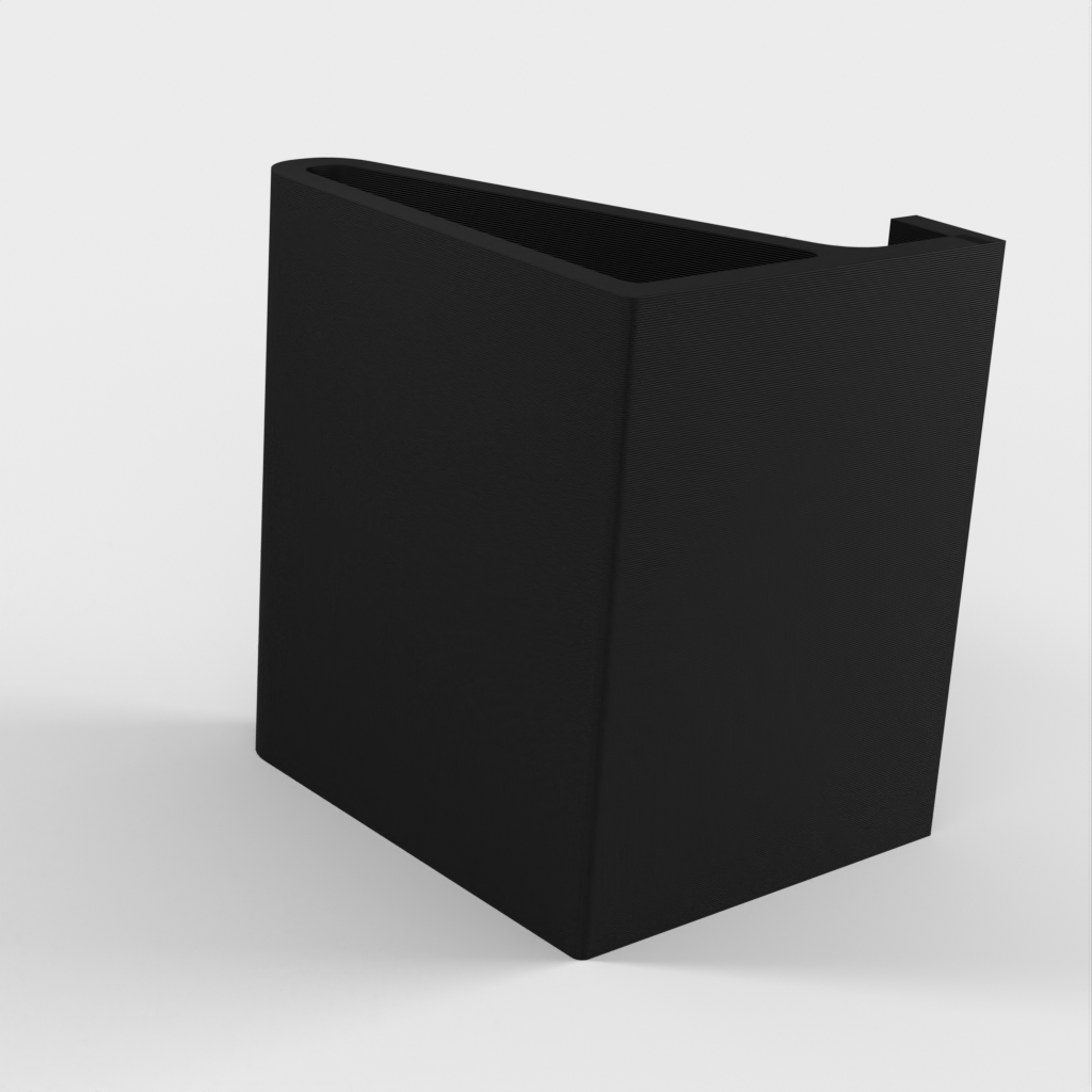Dit is een eenvoudige telefoonstandaard die op vrijwel alle telefoons en tablets past. Deze standaard is er in twee verschillende versies, een sterkere versie voor op reis die een ondersteunde achterkant heeft, en een andere versie die filament en tijd bespaart, maar niet zo goed is om mee te nemen omdat hij kan breken.