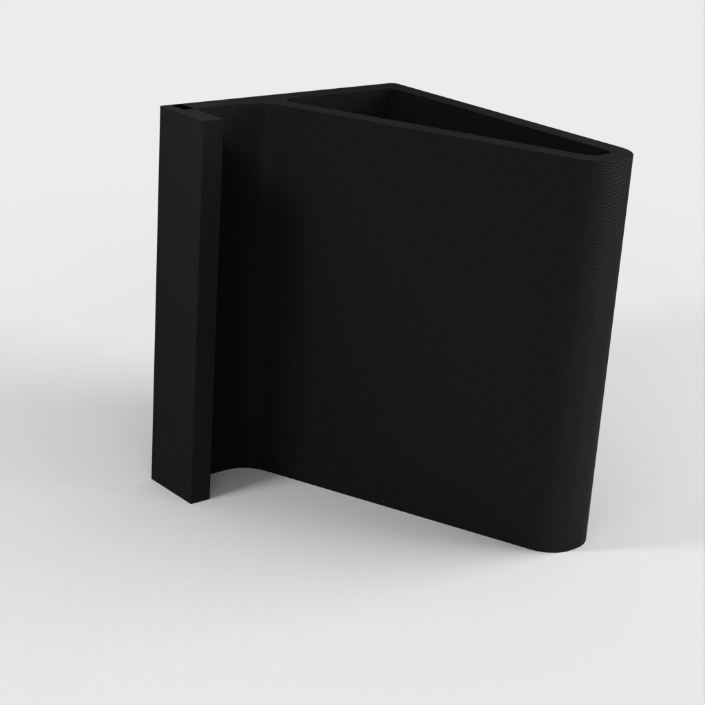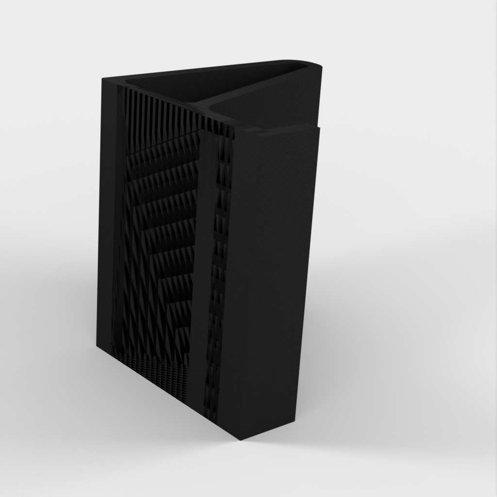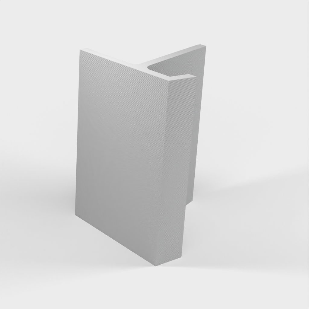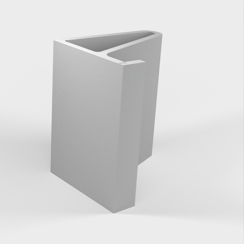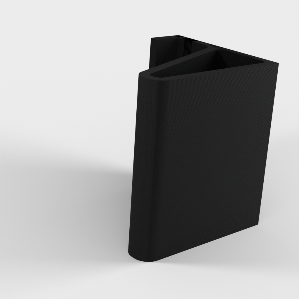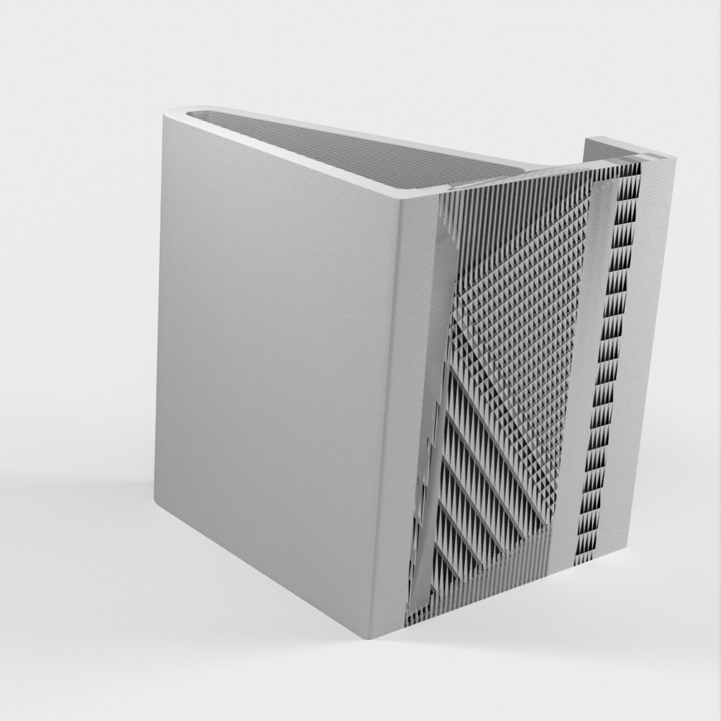 Dit is een eenvoudige telefoonstandaard die op vrijwel alle telefoons en tablets past. Deze standaard is er in twee verschillende versies, een sterkere versie voor op reis die een ondersteunde achterkant heeft, en een andere versie die filament en tijd bespaart, maar niet zo goed is om mee te nemen omdat hij kan breken.