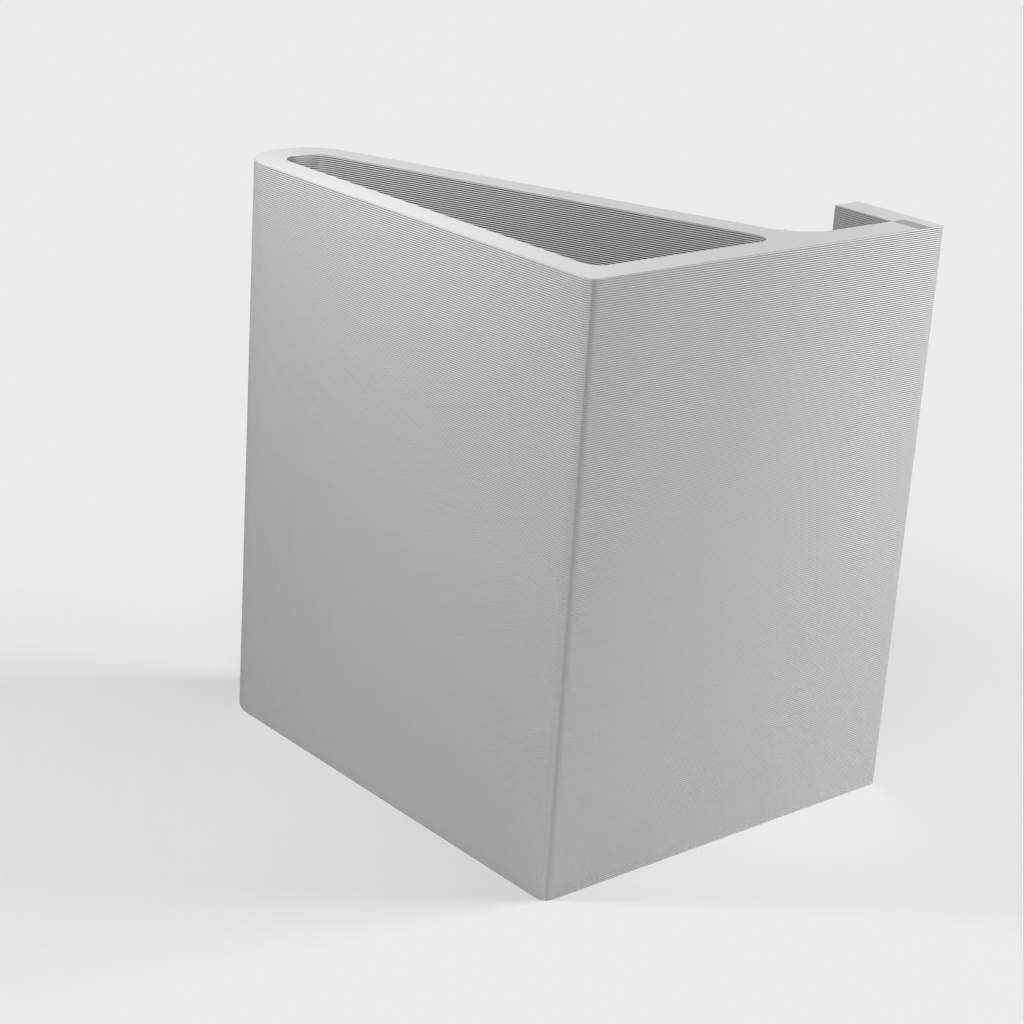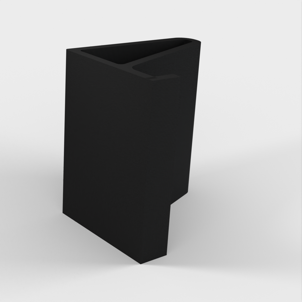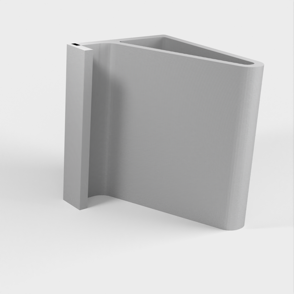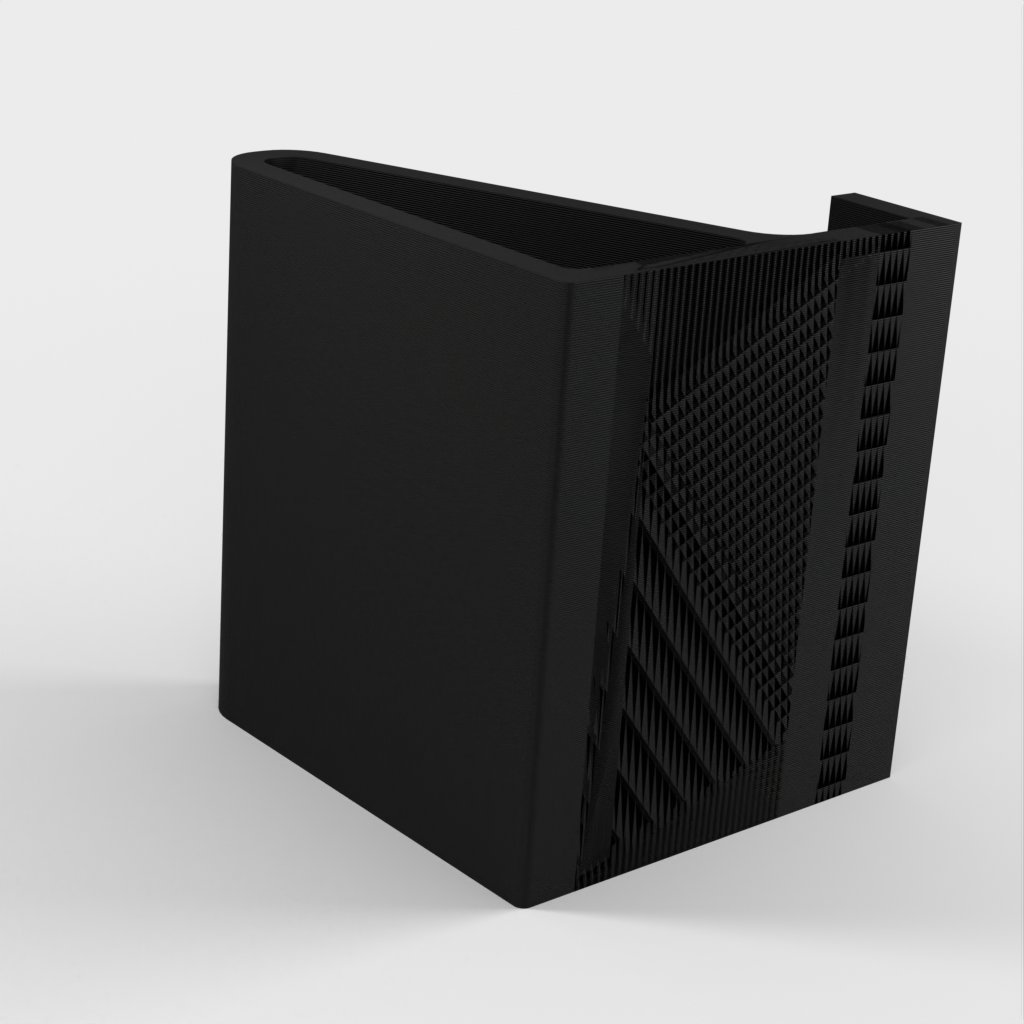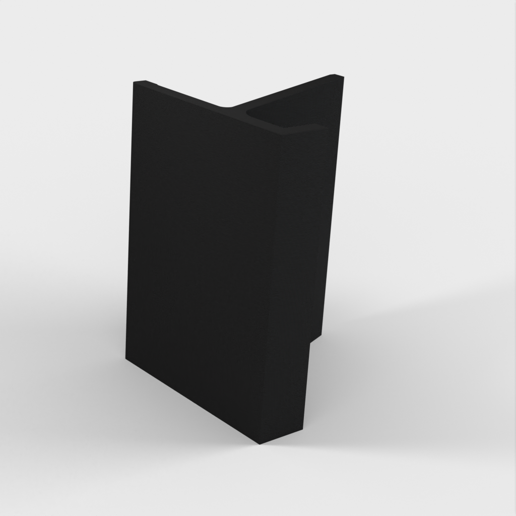 Dit is een eenvoudige telefoonstandaard die op vrijwel alle telefoons en tablets past. Deze standaard is er in twee verschillende versies, een sterkere versie voor op reis die een ondersteunde achterkant heeft, en een andere versie die filament en tijd bespaart, maar niet zo goed is om mee te nemen omdat hij kan breken.