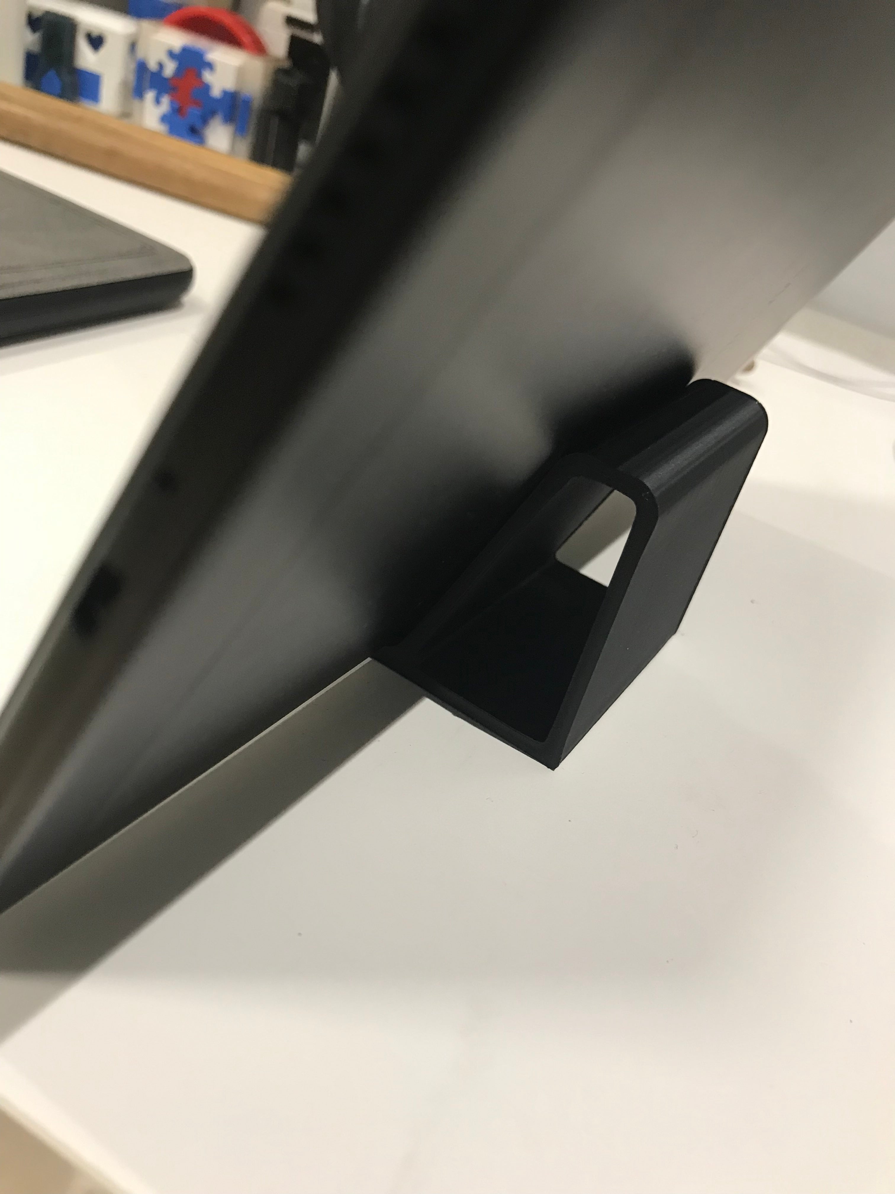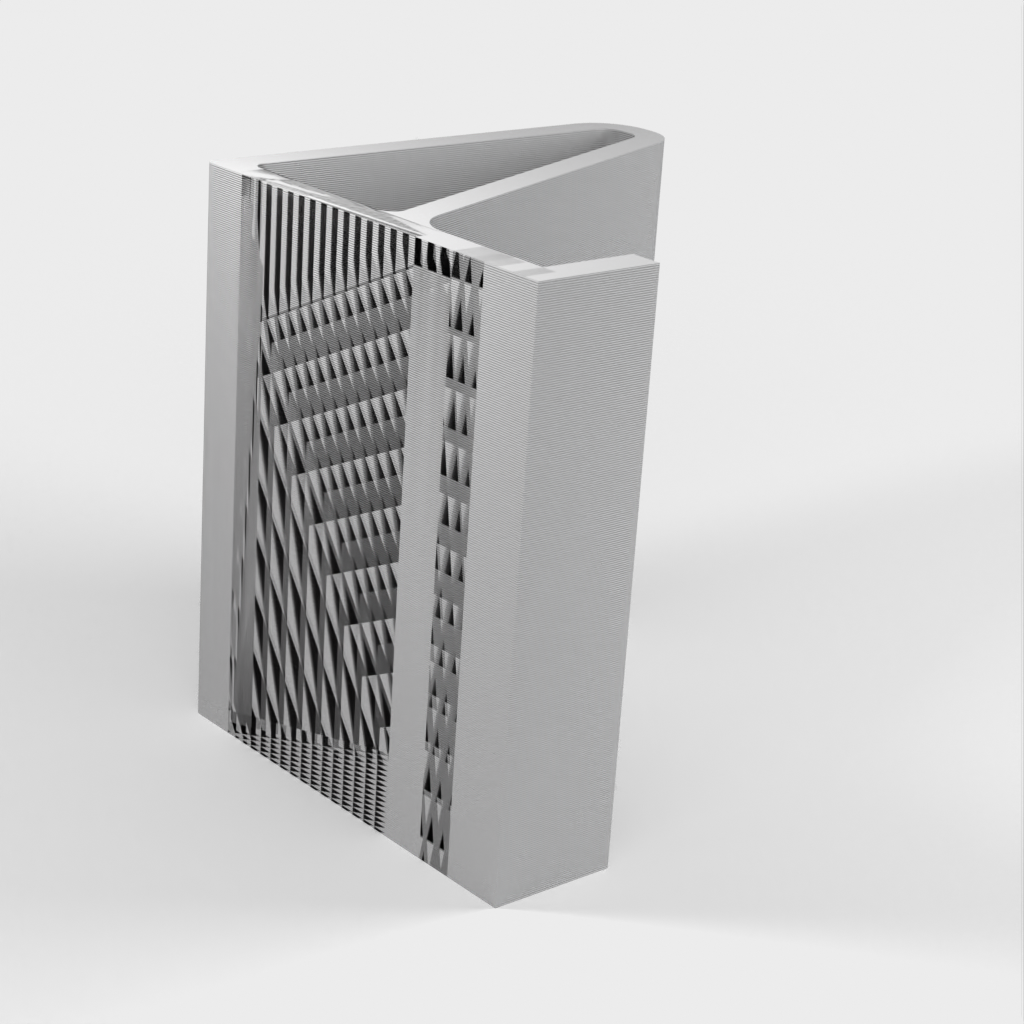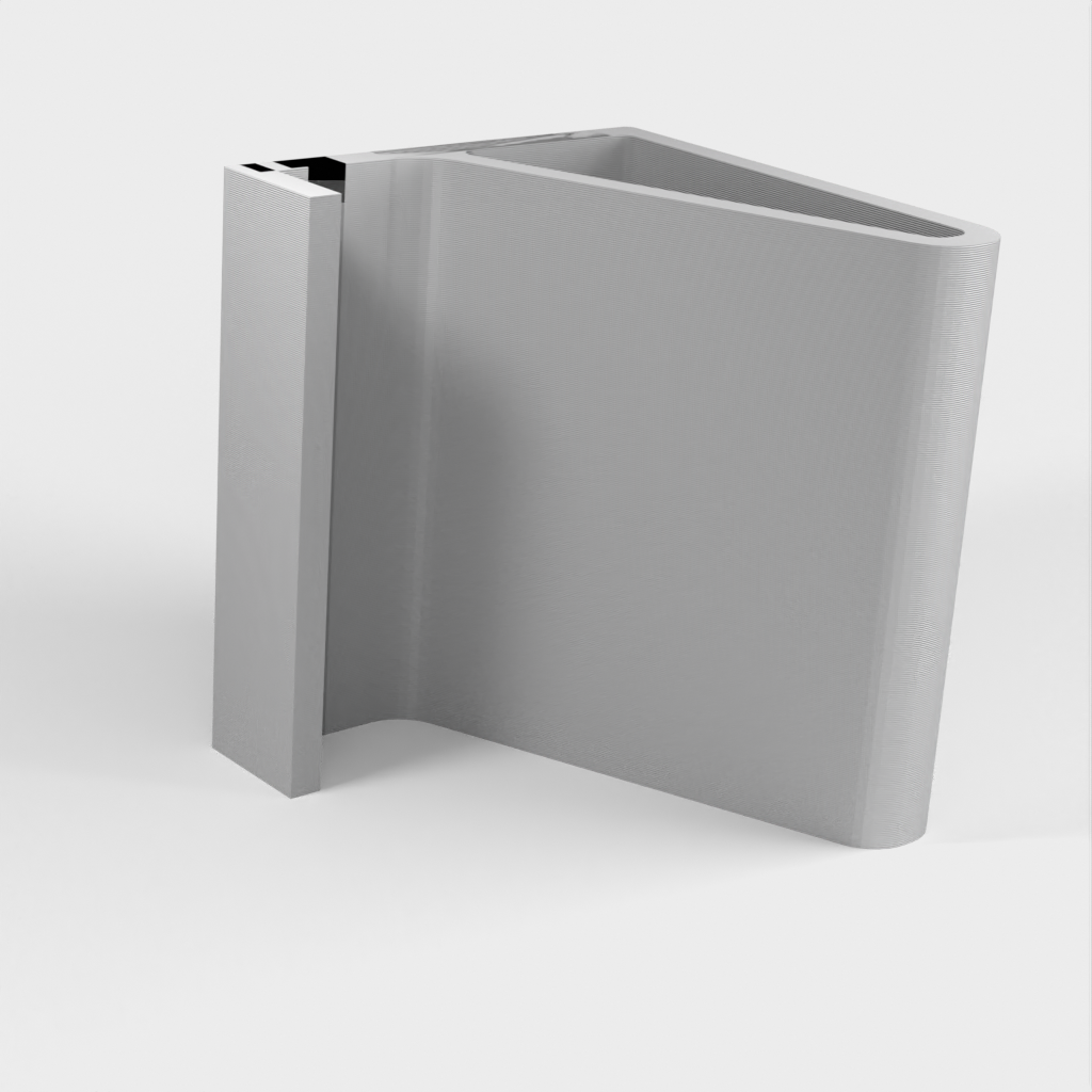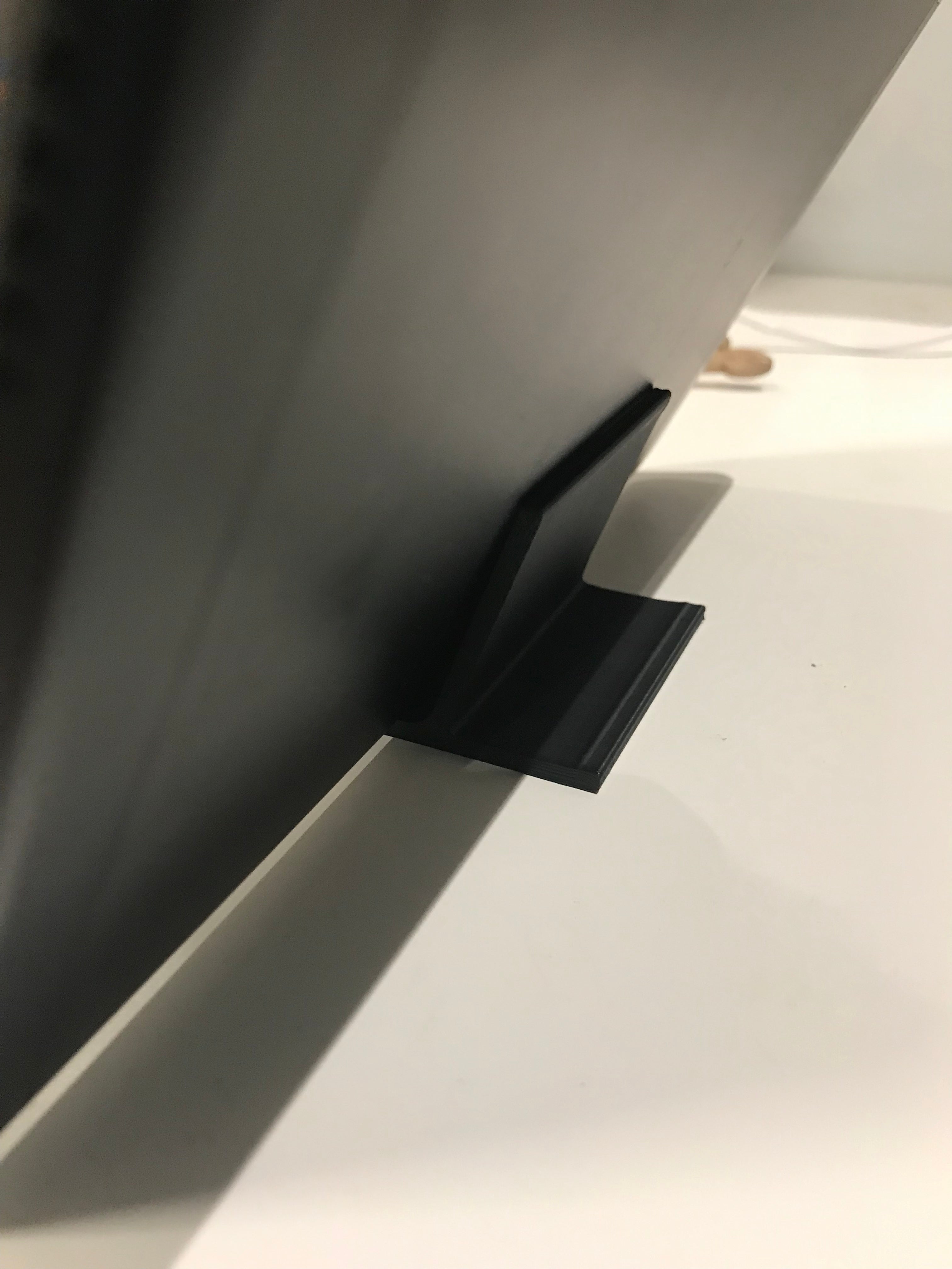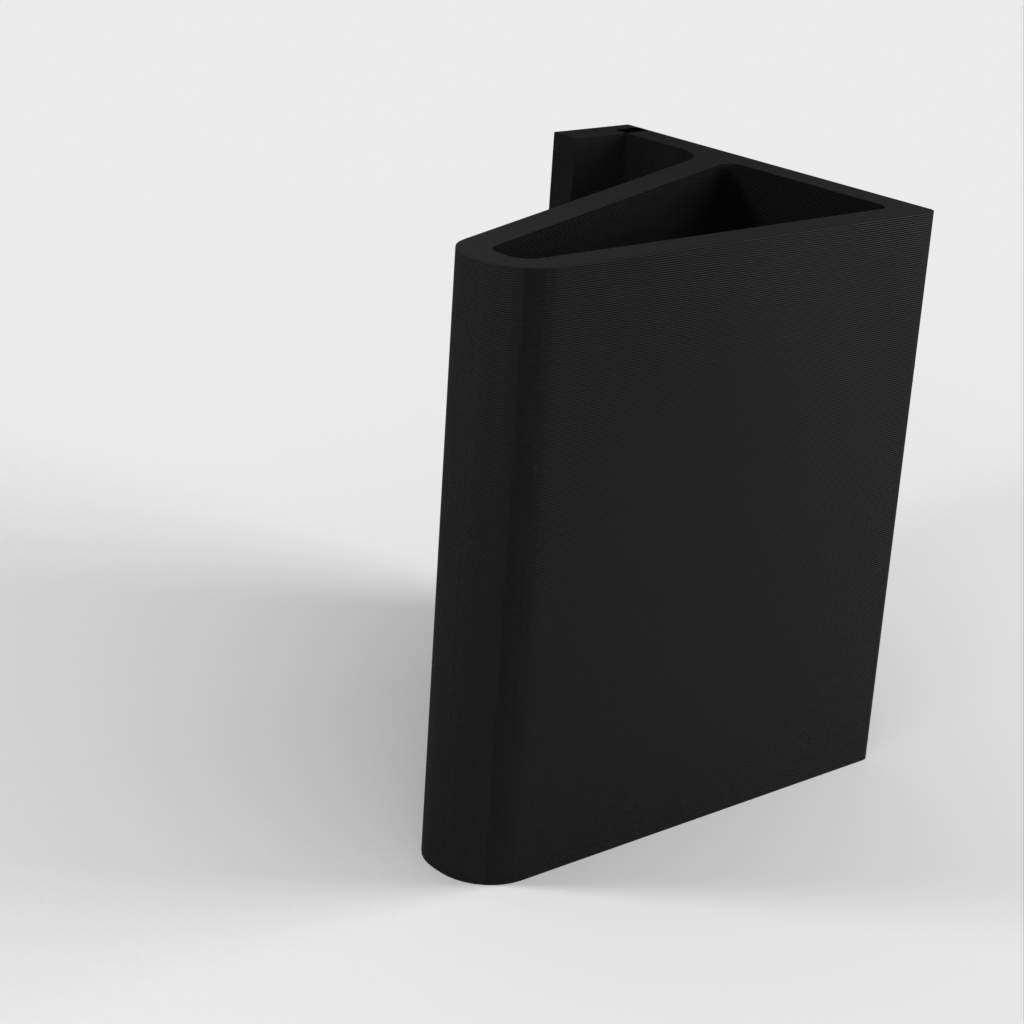 Dit is een eenvoudige telefoonstandaard die op vrijwel alle telefoons en tablets past. Deze standaard is er in twee verschillende versies, een sterkere versie voor op reis die een ondersteunde achterkant heeft, en een andere versie die filament en tijd bespaart, maar niet zo goed is om mee te nemen omdat hij kan breken.
