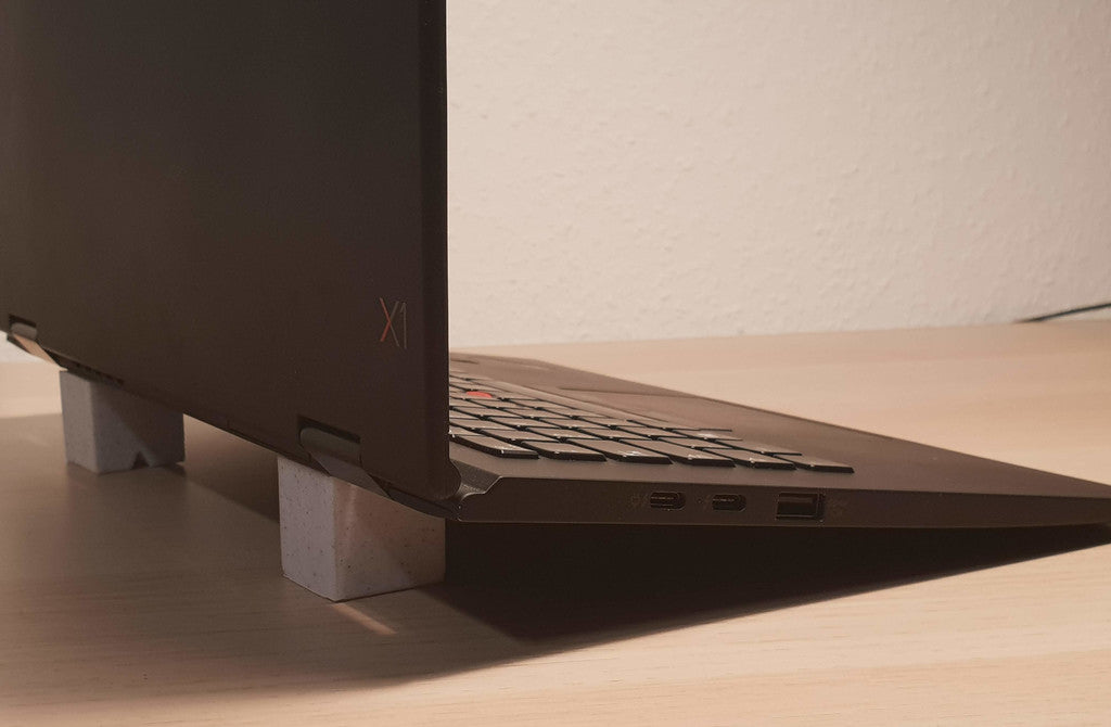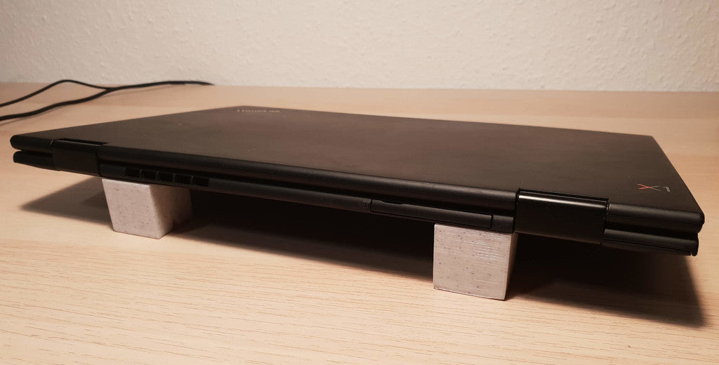 Dit is een eenvoudige universele laptopstandaard die een laptophoek van 10 graden biedt. Voor de meeste laptops zouden 2 van deze voldoende moeten zijn om goede ondersteuning te bieden. Het formaat is een kubus van 30 mm, de hoogte is hoog genoeg om ongeveer 20 cm vanaf het begin van de laptop te zijn.