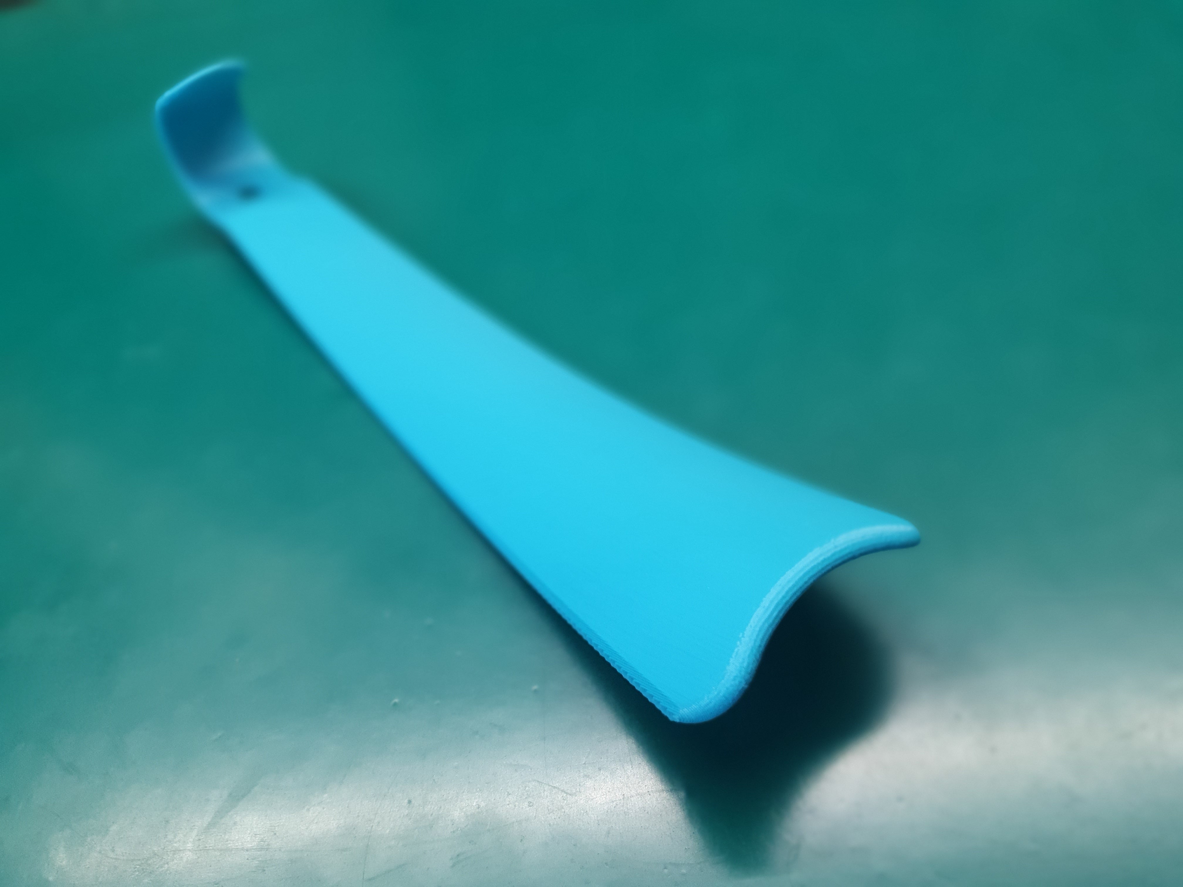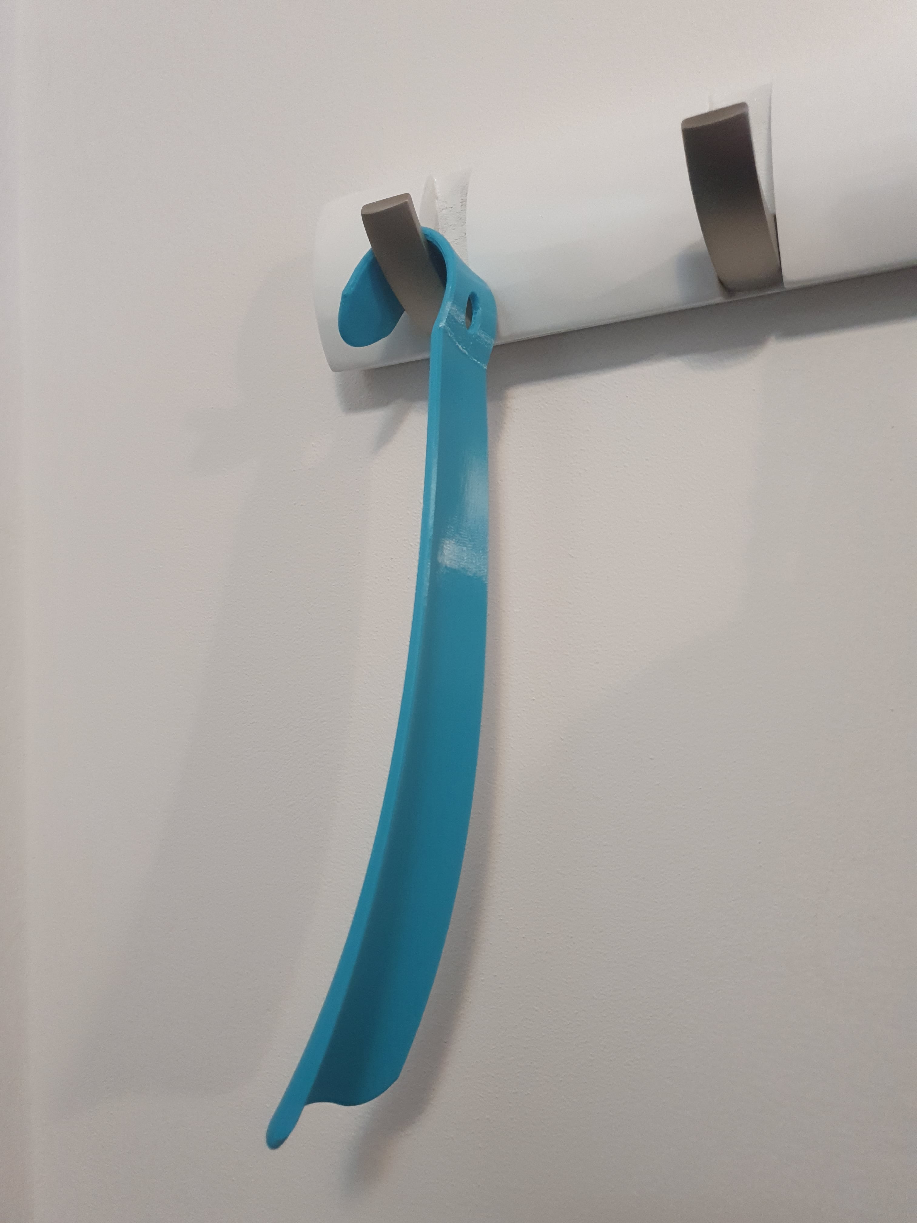 Grote schoenlepel met een schuin uiteinde zodat hij aan elke hanger kan worden gehangen. De lange vorm (27,8 cm) is ideaal voor mensen die moeilijk bij hun voeten kunnen. Voor dit product is geen steun nodig. Belangrijk om te weten: het is cruciaal om de naad aan de binnenkant van het ronde deel te verven om ongewenste artefacten te voorkomen.