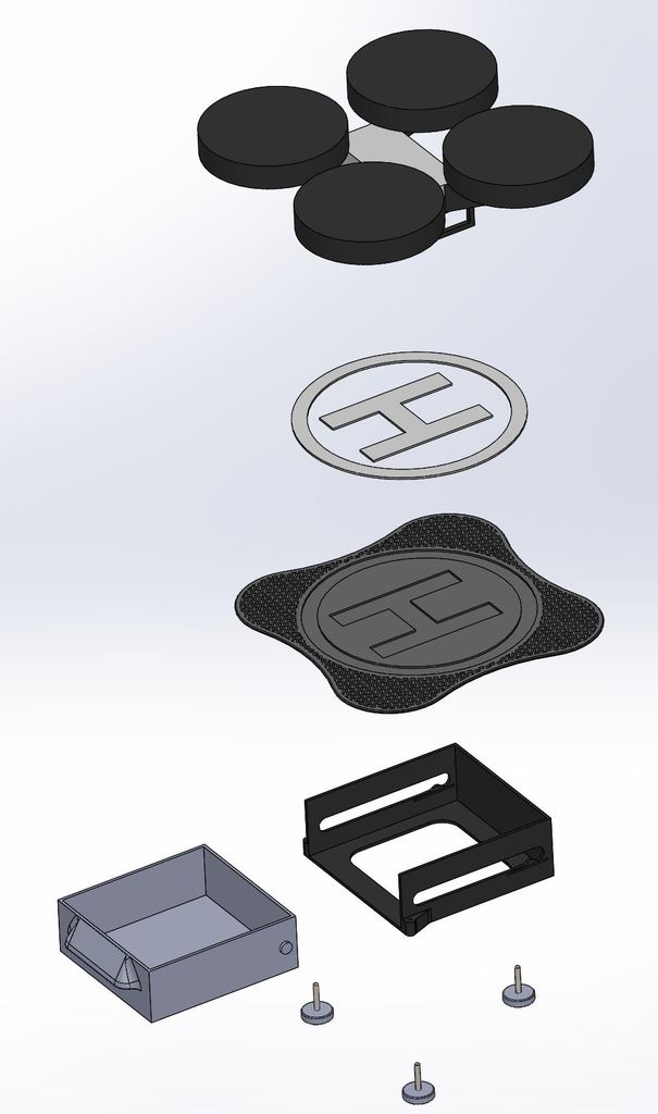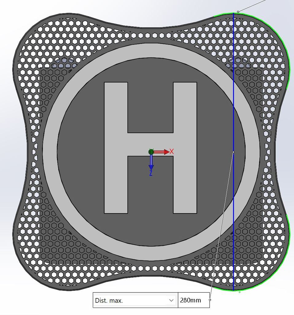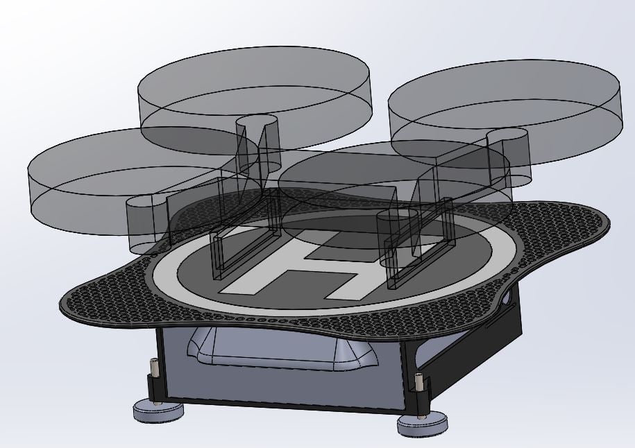 De standaard heeft drie verstelkussens voor waterpasstelling, wat zorgt voor een stabiele en vlakke landing elke keer weer. Met een maximale voetafdruk van 280 x 280 x 77 mm past deze landingsbaan perfect in elke hobby- of professionele omgeving.