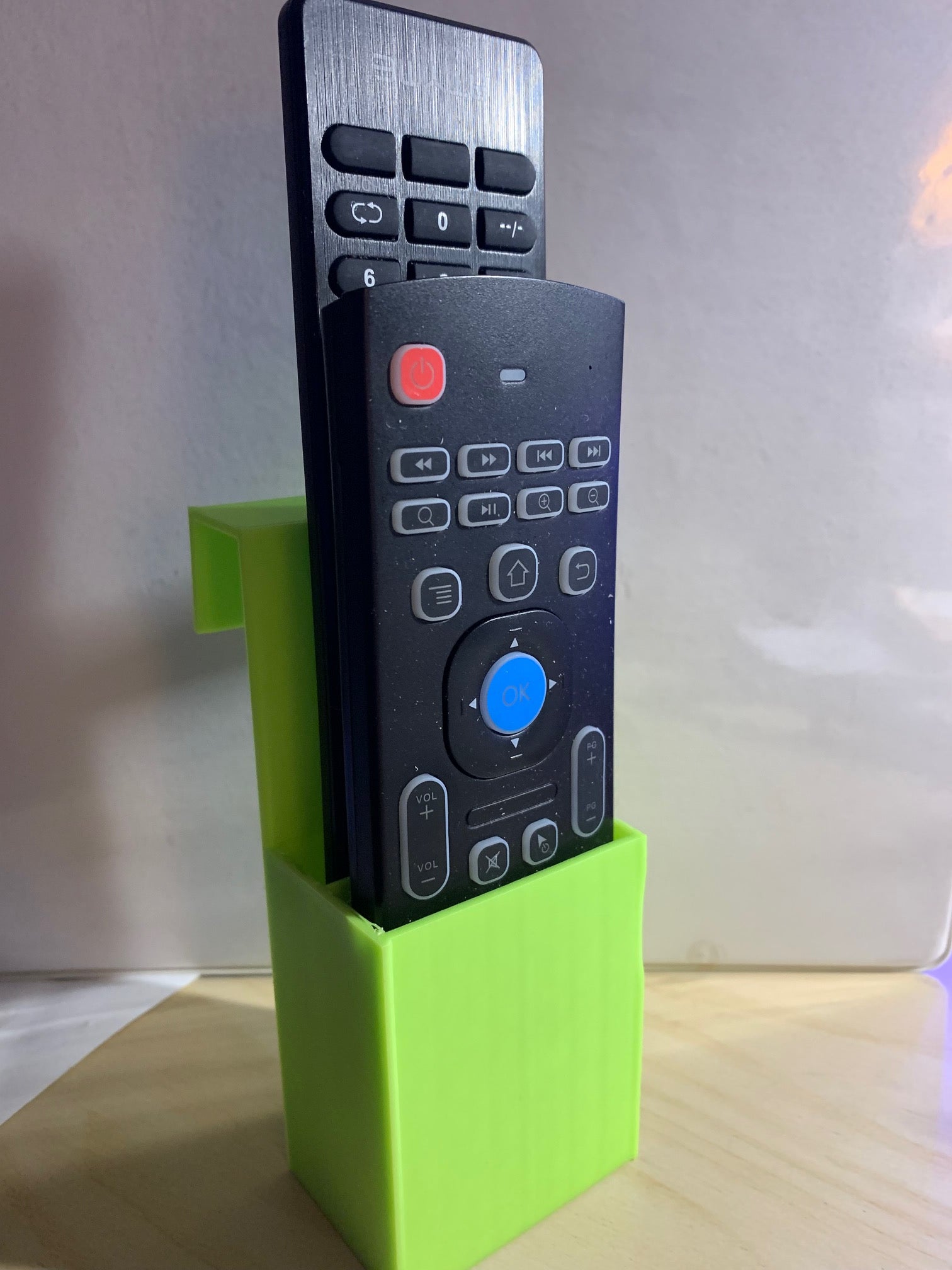 Een afstandsbedieninghouder om je afstandsbediening gemakkelijk en handig in op te bergen. De houder kan op elke handige plek in huis worden geplaatst, zodat je je afstandsbedieningen altijd bij de hand hebt. Perfect om je apparaten bij te houden en je huis netjes te houden.