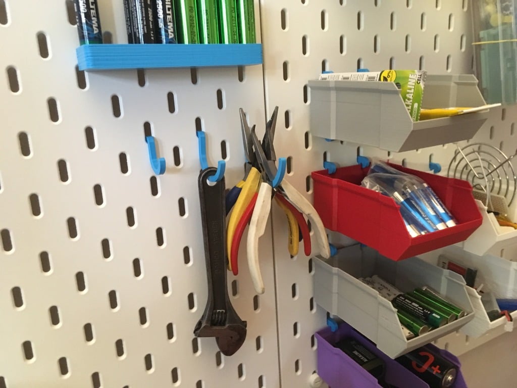 Een enkele hangerhaak die past op de IKEA Skadis (Skådis). Deze haak kan gemakkelijk aan je prikbord worden bevestigd en helpt je om je kantoorbenodigdheden gemakkelijk en handig te organiseren. Een must-have voor iedereen die een opgeruimd en georganiseerd kantoor wil.