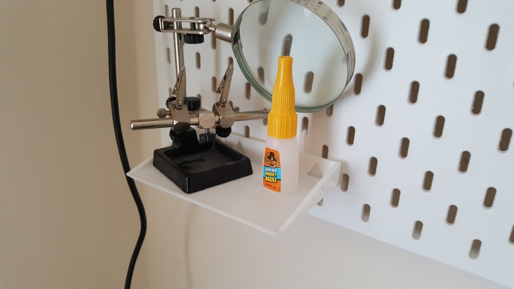 Een pakket met plank- en plankhaken voor het IKEA SKÅDIS Pegboard systeem. Zo ontworpen dat de haken kunnen worden verwijderd, maar het is aan te raden om ze vast te lijmen voor extra veiligheid. Met dit pakket kan je je spullen makkelijk organiseren en opbergen op een efficiënte en veilige manier.