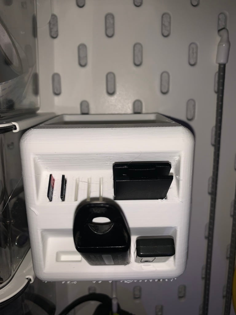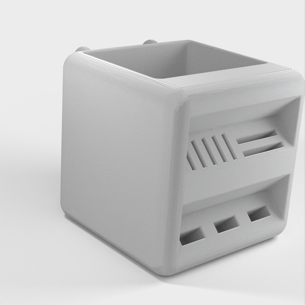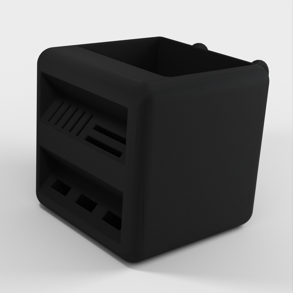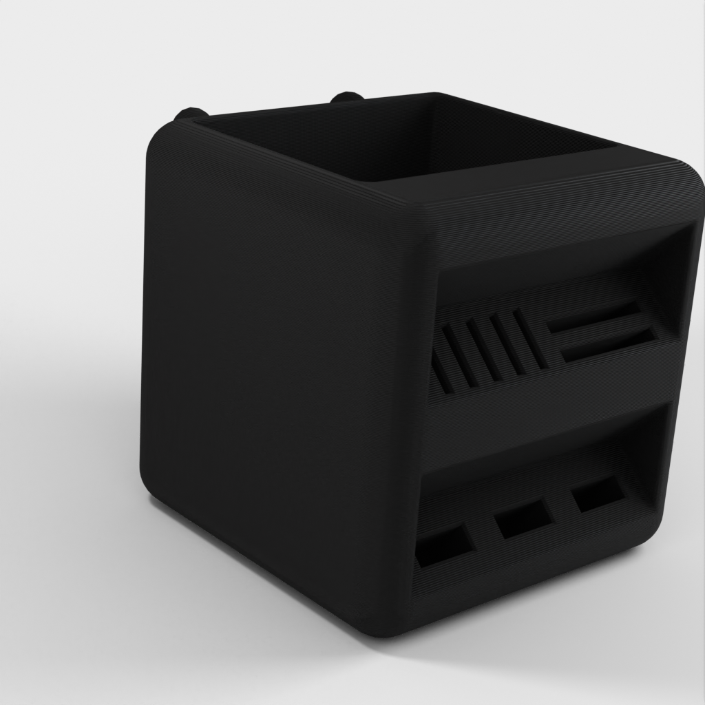 Penhouder ontworpen om op Ikea Skadis planken te passen. Deze houder biedt een praktische en ruime oplossing om je pennen en SD-kaarten te organiseren. Door een nette en georganiseerde opbergoplossing te bieden, helpt deze houder je bureau opgeruimd te houden.