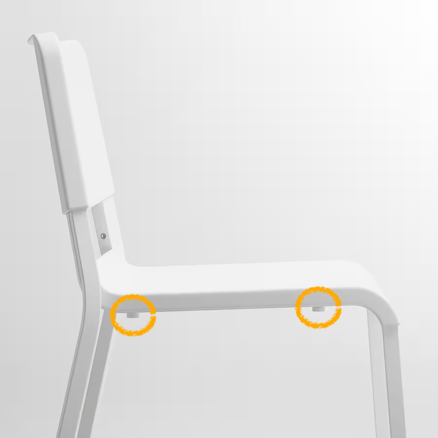 Dit is een snel te vervangen onderdeel voor IKEA Teodore stoelen. Dit inzetstuk wordt gebruikt om het plastic zitgedeelte aan het metalen frame vast te maken. Als je een standaard sluitring gebruikt, zal de kunststof studio-inzetstuk vervormen.