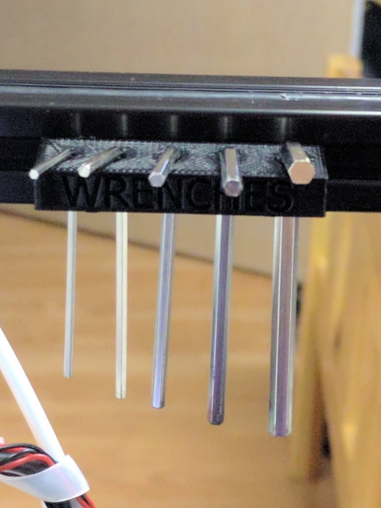 Hex Wrench-houder is ontworpen om een set van 5 standaard inbussleutels of Hex-sleutels te bevatten die meestal bij de meeste 3D-printers worden geleverd. Dit hulpmiddel is een praktisch idee, omdat het direct aan de 3D-printer kan worden gehangen voor gemakkelijke toegang.