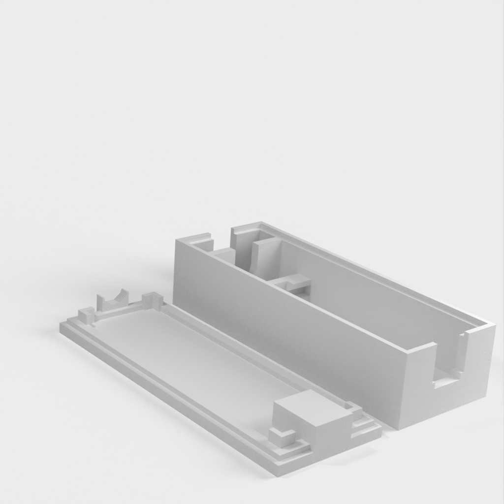 Eenvoudige behuizing voor Arduino Nano, die aanbevolen wordt voor gebruik. Dit model heeft ruimte voor een 6mm I/O-kabel en een kabelhouder.