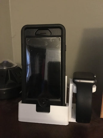 Dit praktische laadstation is ontworpen om een georganiseerde oplossing te bieden voor uw iPhone 6 en uw Apple Watch. Hij past specifiek op een iPhone 6, zelfs als deze is uitgerust met een robuuste Otterbox-hoes, en biedt tegelijkertijd een speciale ruimte voor uw Apple Watch.
