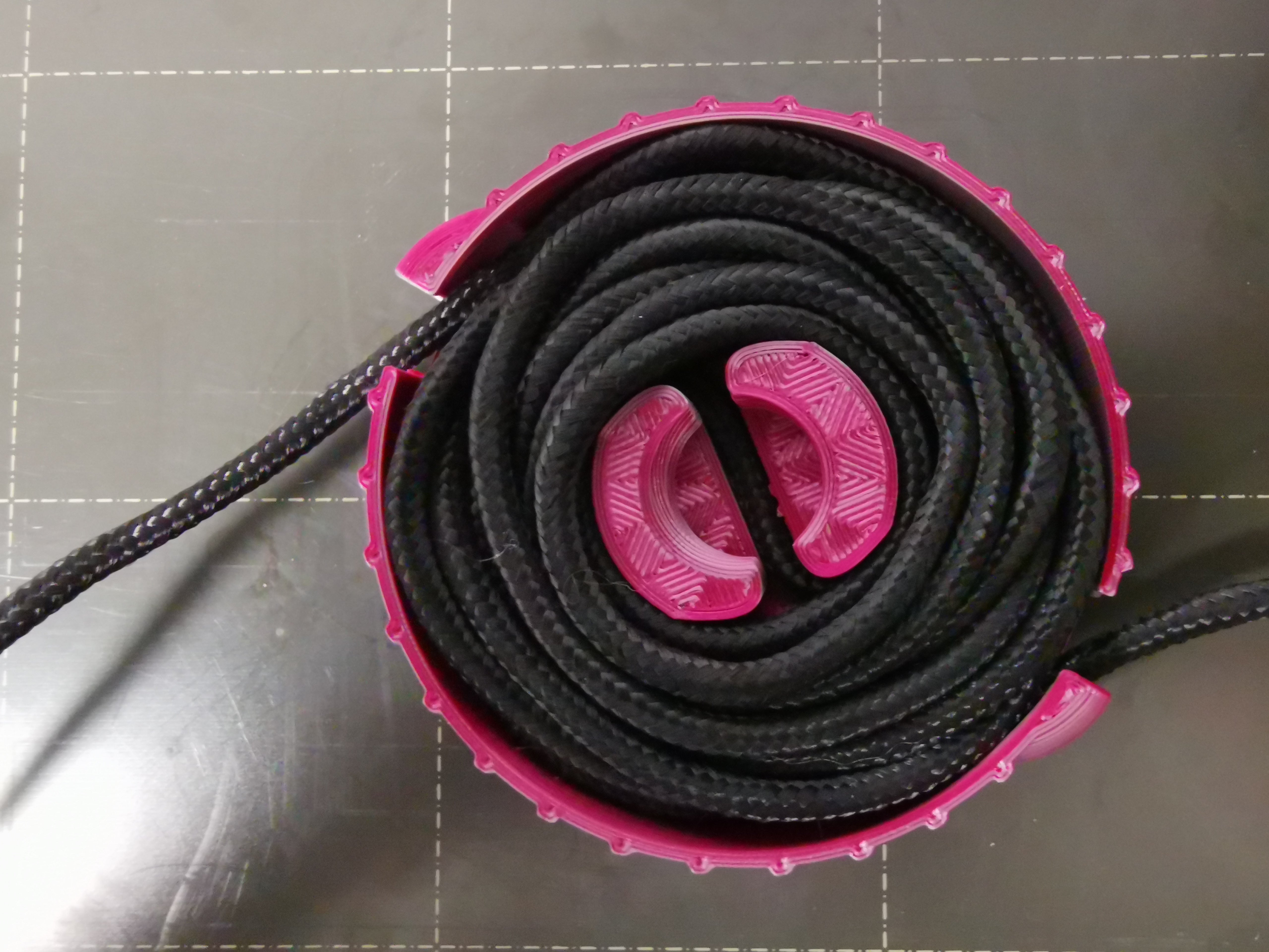 Een kabelhouder, perfect om je kabels georganiseerd en zonder onnodige bochten te houden. Er passen verschillende lengtes kabels in, afhankelijk van het gekozen model. Het eerste getal geeft bij benadering de kabellengte aan, terwijl het tweede getal de hoogte aangeeft. Gemaakt van PLA- of PETG-materiaal, zonder steunen.