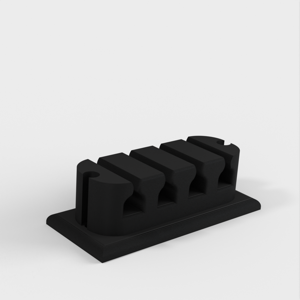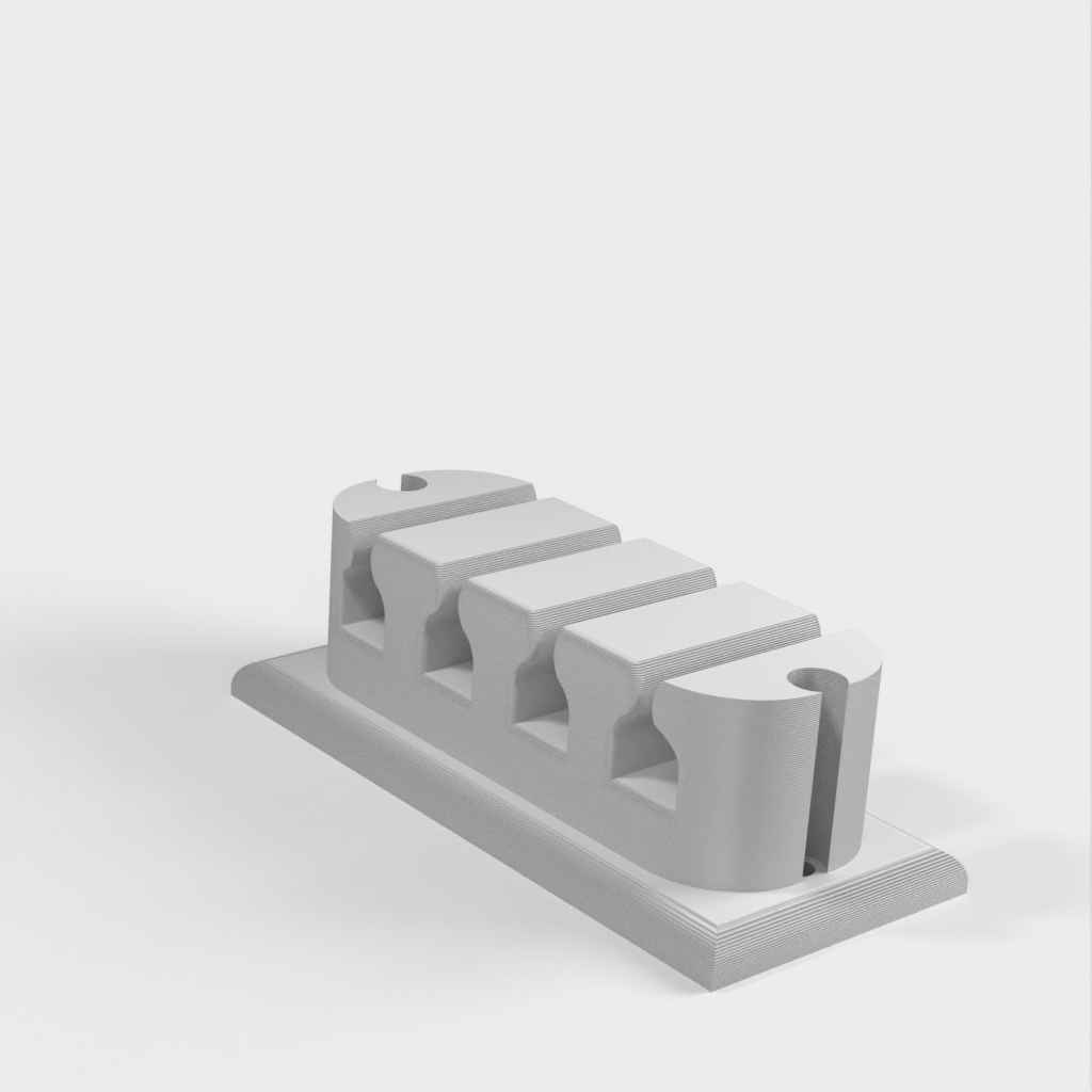 Een 4-strengs kabelhouder met schroefgaten. Deze kabelhouder is eenvoudig te monteren en helpt bij het organiseren van je kabels. Het biedt een eenvoudige oplossing voor het veelvoorkomende probleem van kabelwarboel. Je kunt je kabels gemakkelijk en veilig op hun plaats vastzetten, terwijl je ze kunt verwisselen als dat nodig is. Voor extra stevigheid zijn een vulling van 70% en 4 randen toegevoegd op de plekken die het zwaarst worden belast.