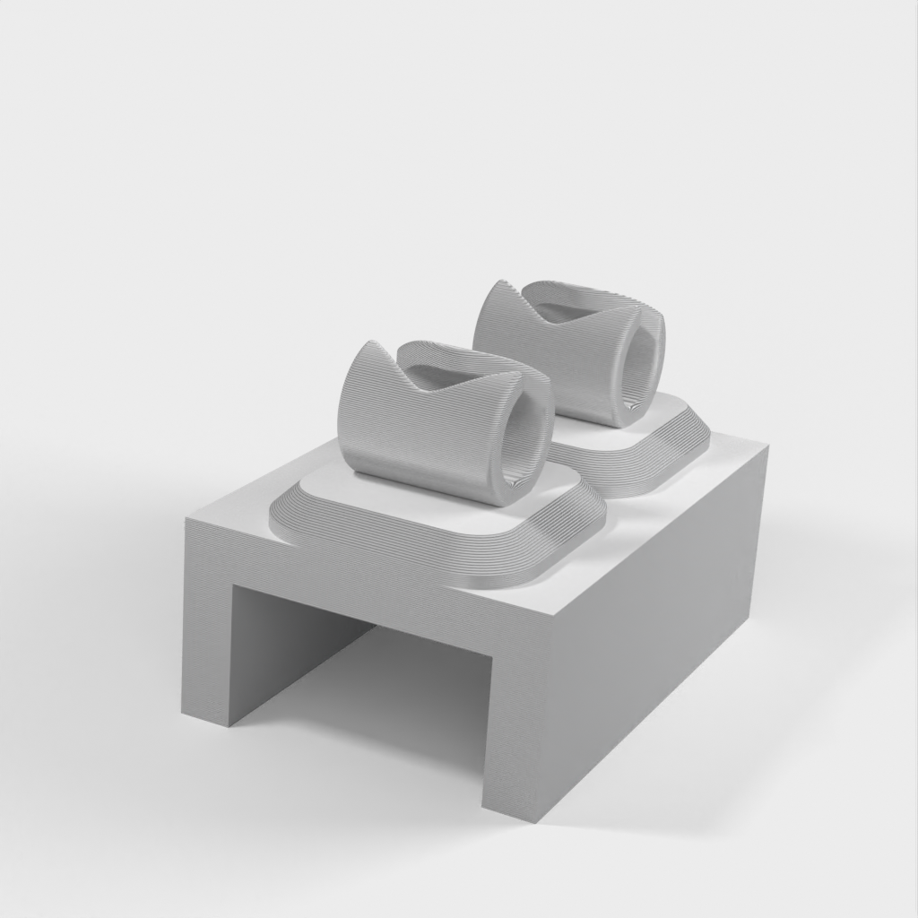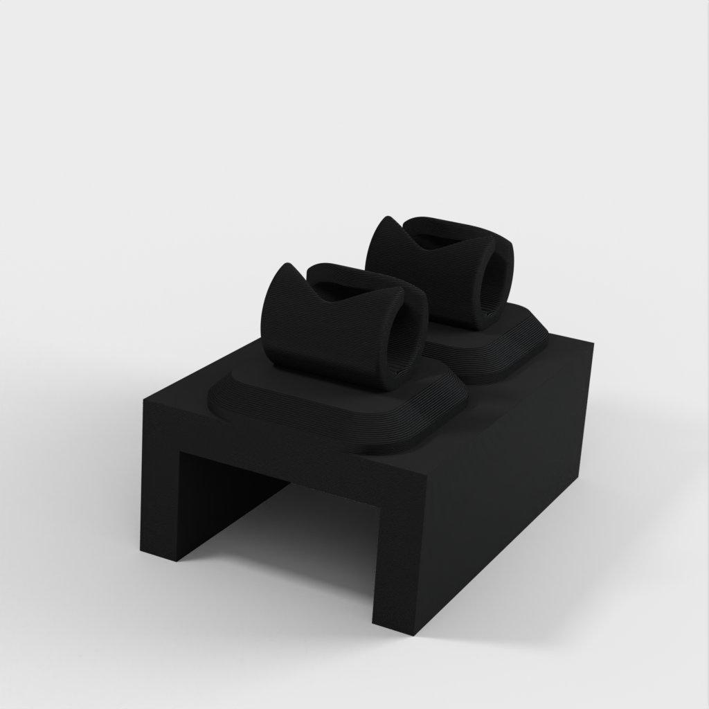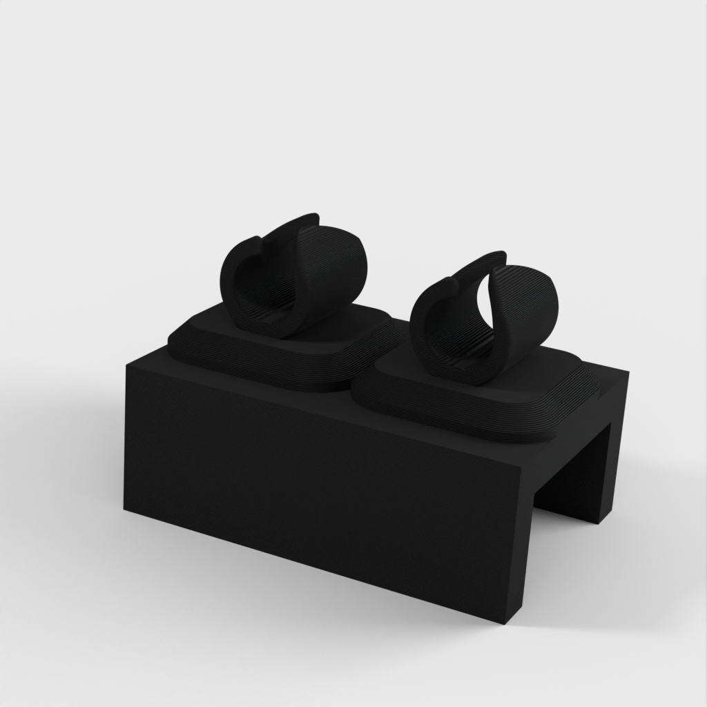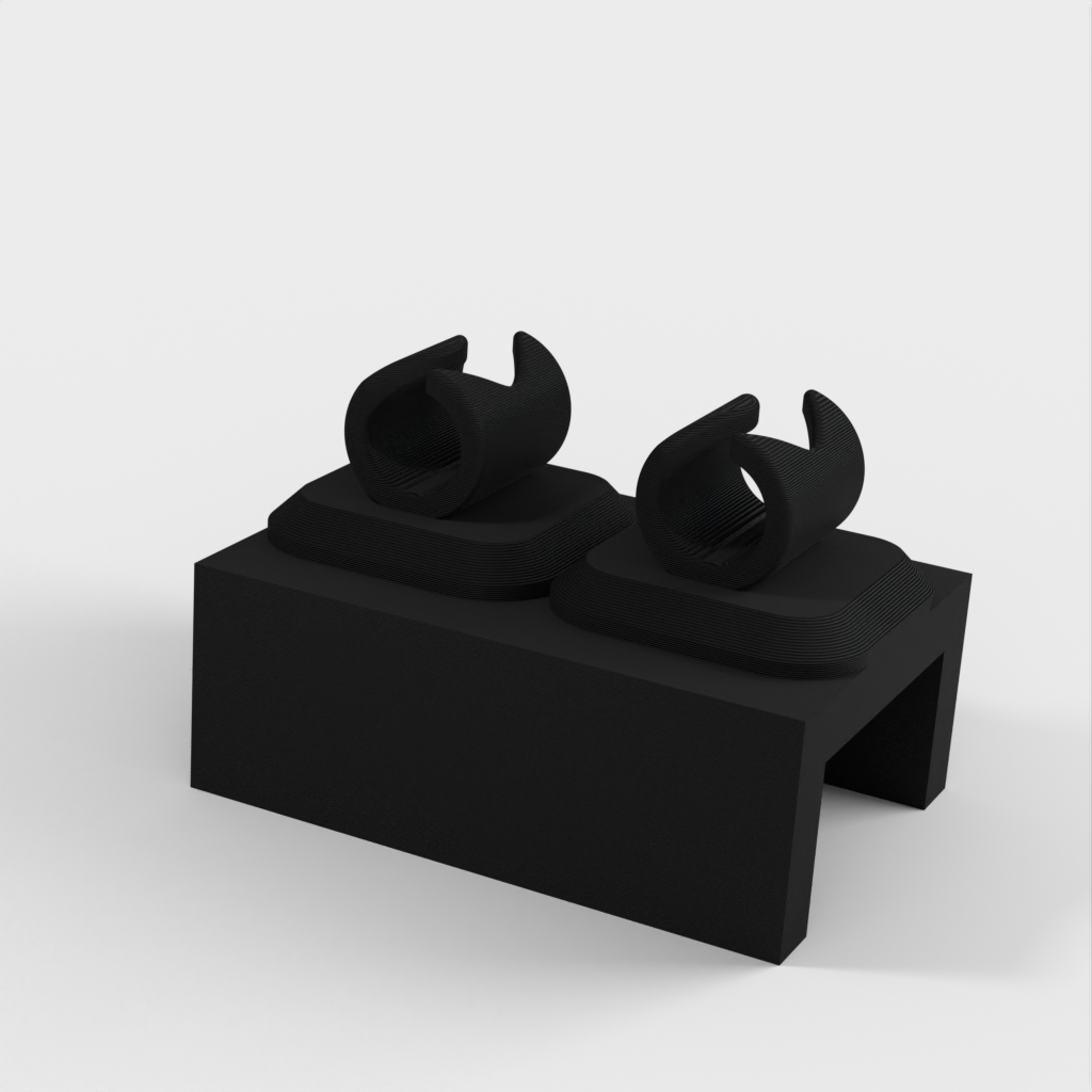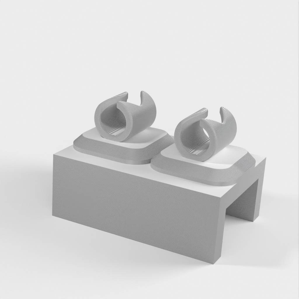 Dit is een eenvoudige kabelhouder die is ontworpen om je kabels te organiseren en apart te houden. Hij kan eenvoudig aan de muur worden bevestigd met schroeven om een opgeruimde werkplek te creëren. De kabelhouder is gedrukt in een unieke paarse PLA-zijde die een vleugje kleur toevoegt aan je werkruimte.