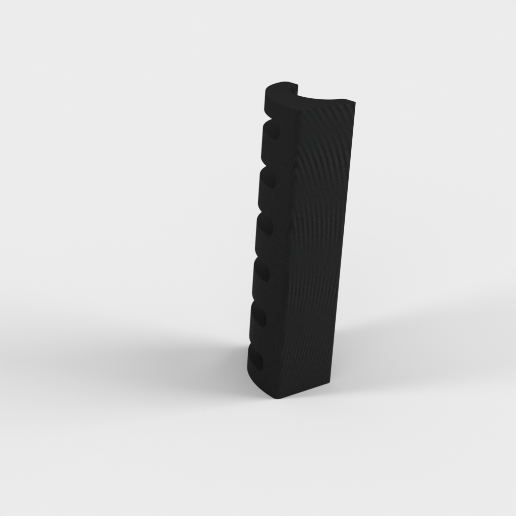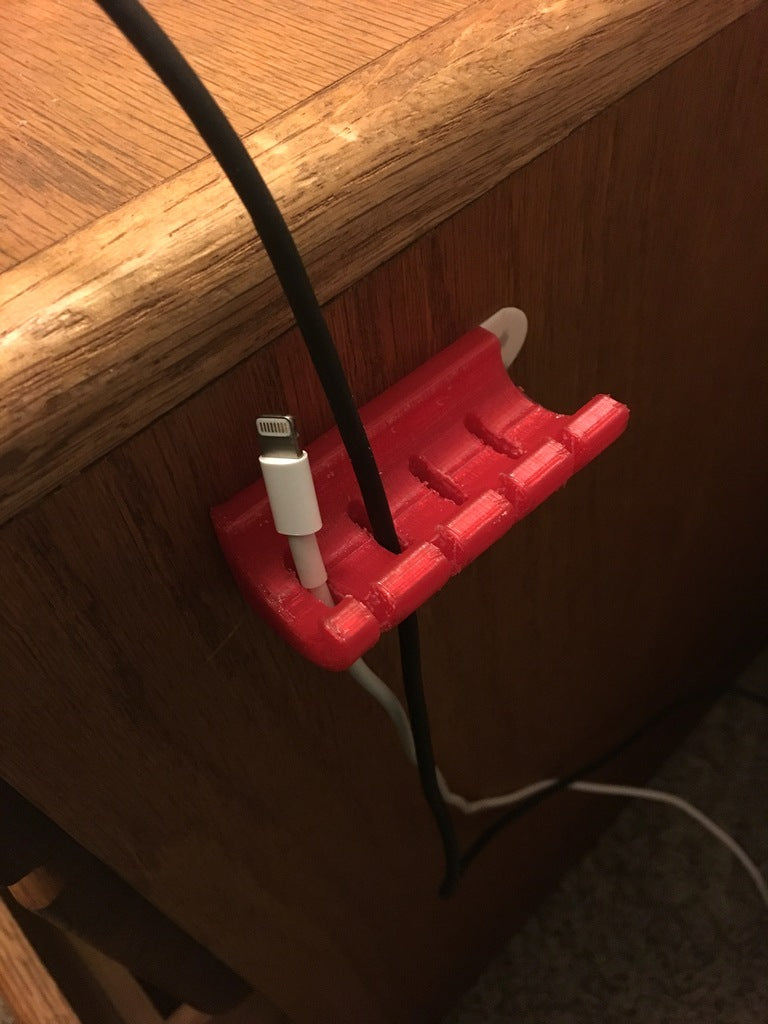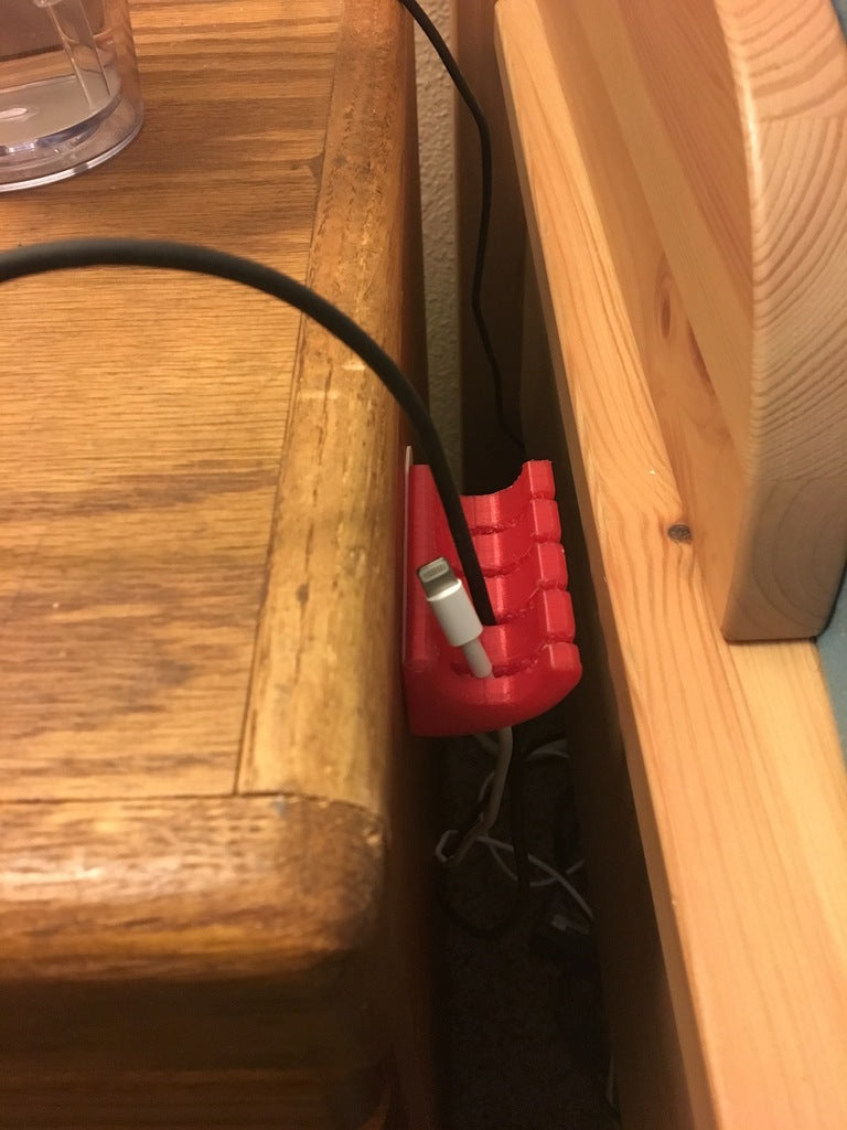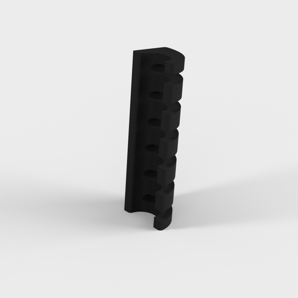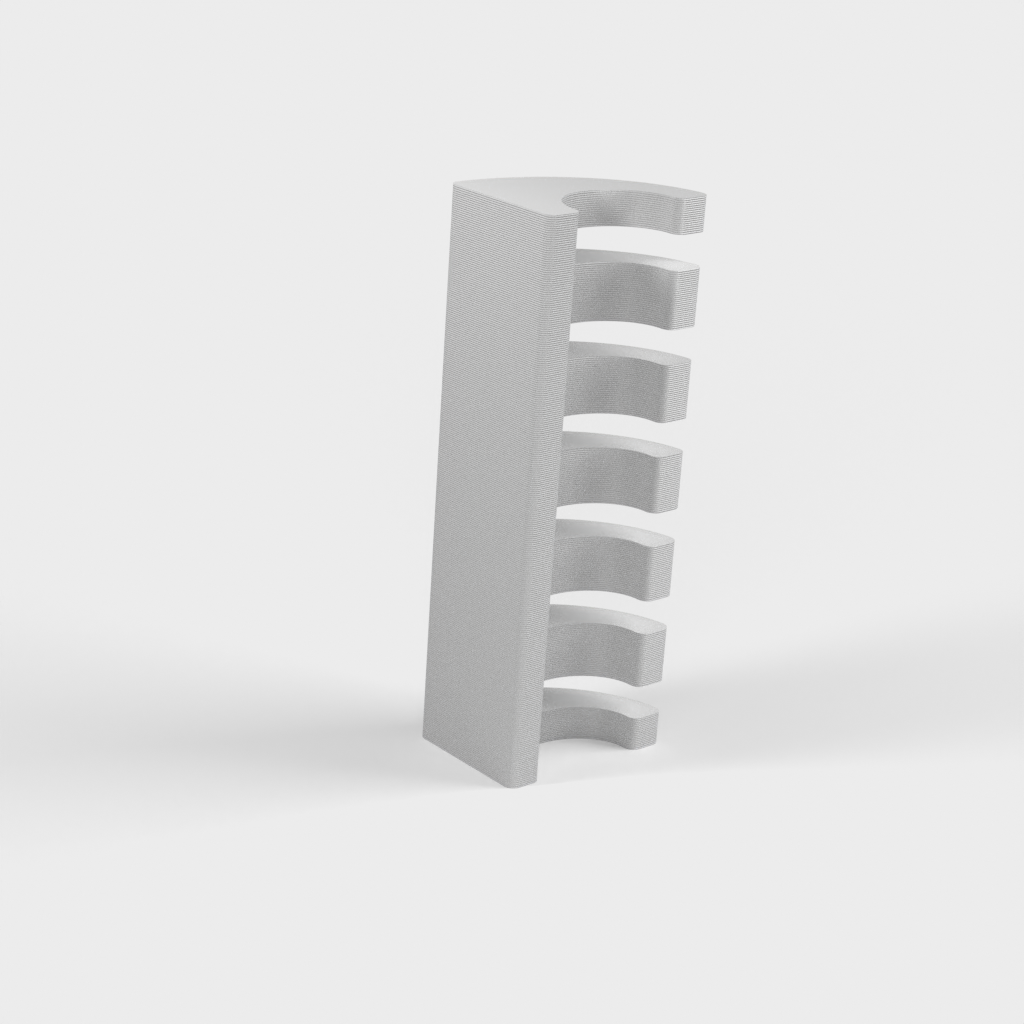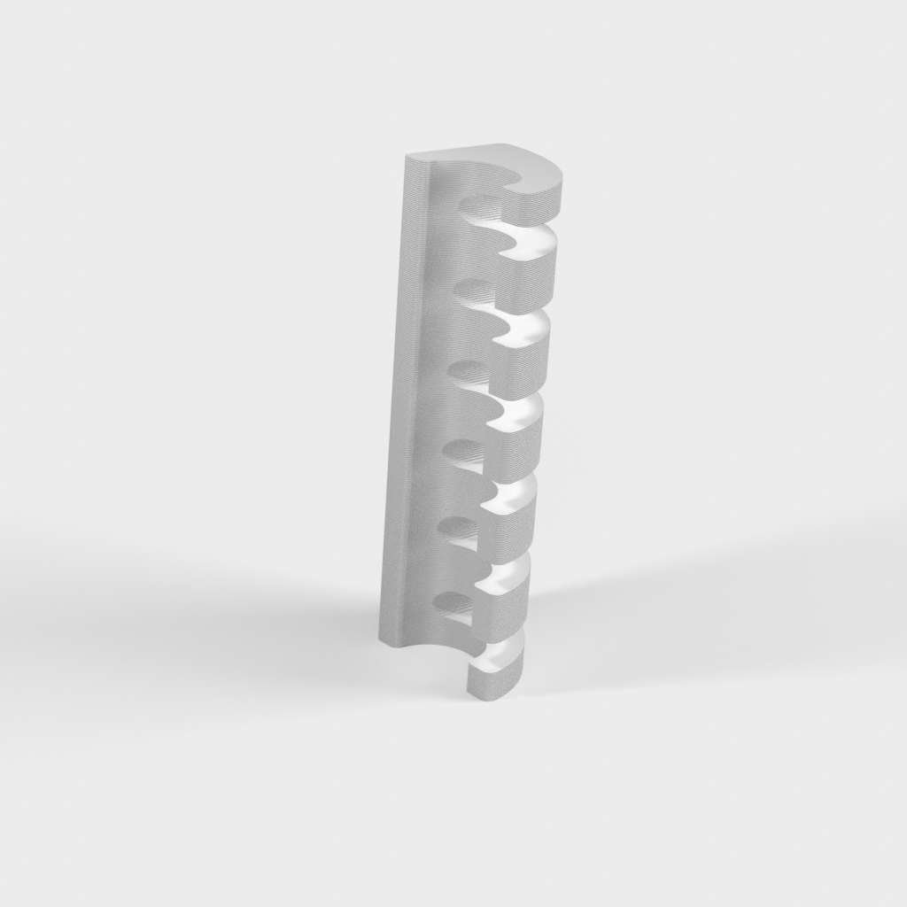 Dit is een kabelhouder voor de rand van de tafel die voorkomt dat stroomkabels aan de rand van je bed in de spleet tussen je bed en het nachtkastje glijden. Hij is ontworpen om gemakkelijk meerdere kabels tegelijk vast te houden en kan in grootte worden aangepast om beter aan je individuele behoeften te voldoen. Dit praktische accessoire zorgt voor een georganiseerde en opgeruimde uitstraling van je slaapkamer of kantoor en voorkomt tegelijkertijd dat je kabels worden getrokken en beschadigd.