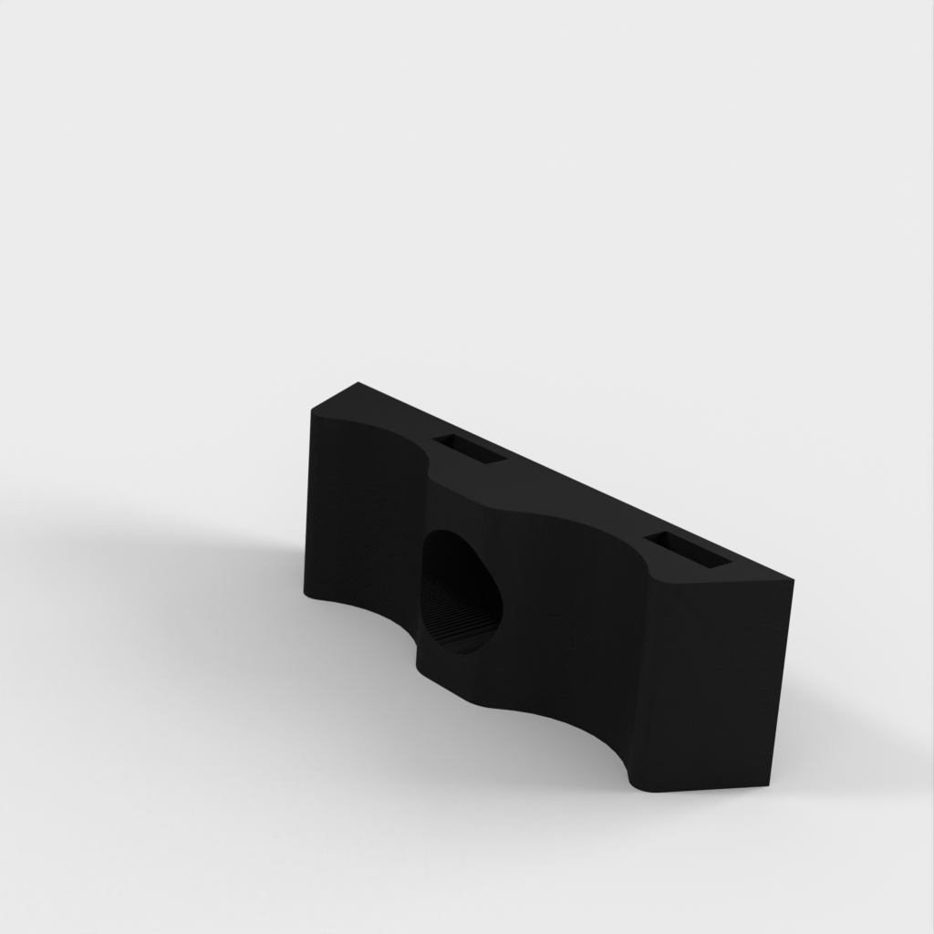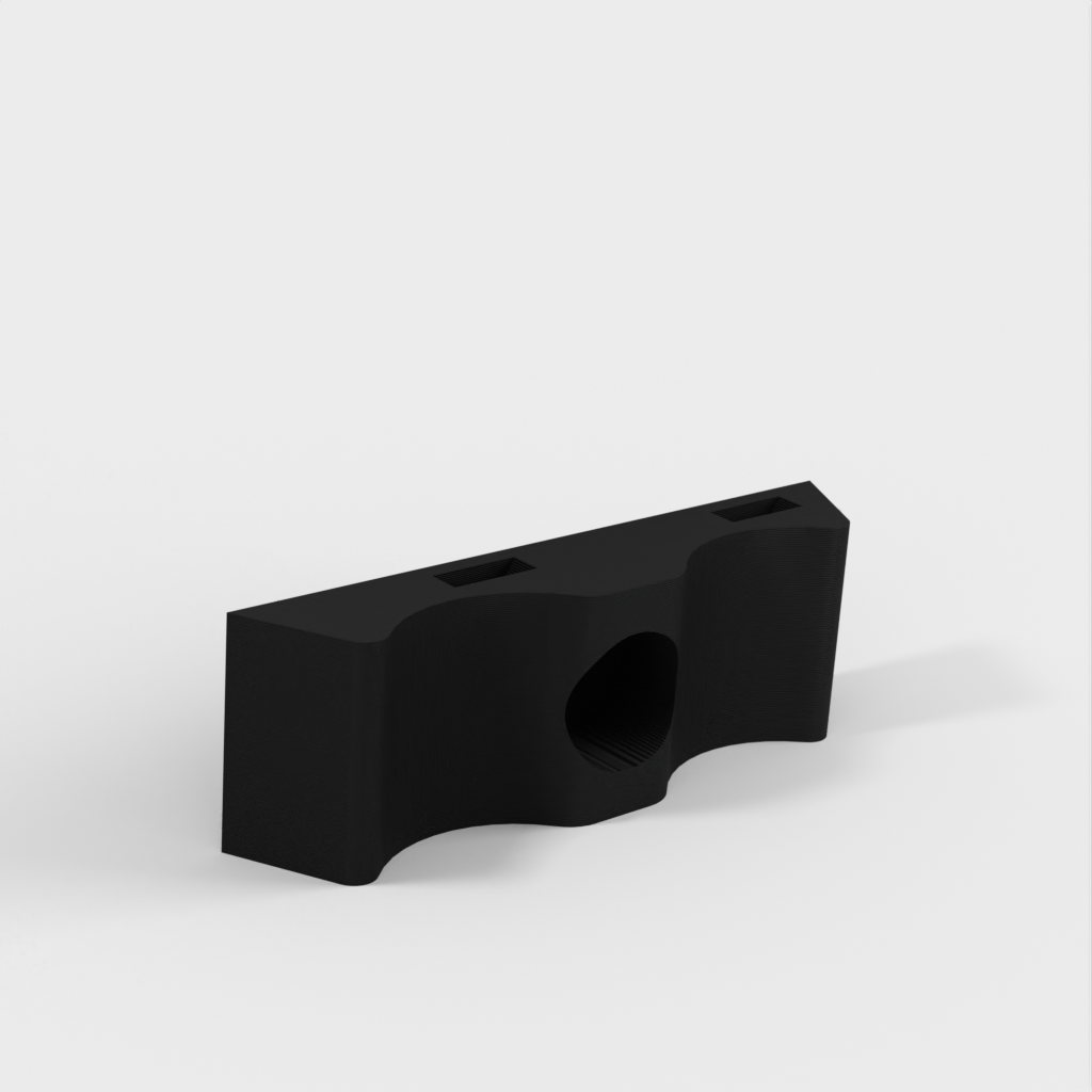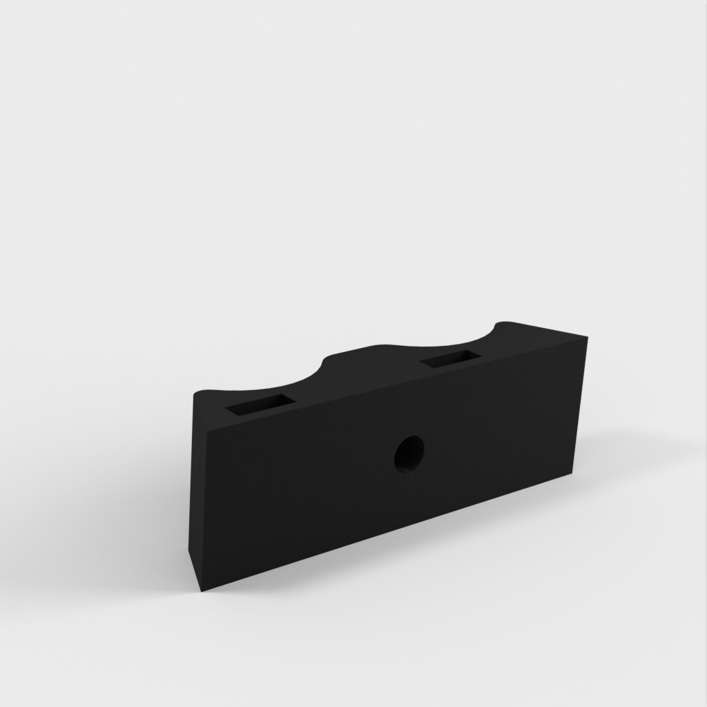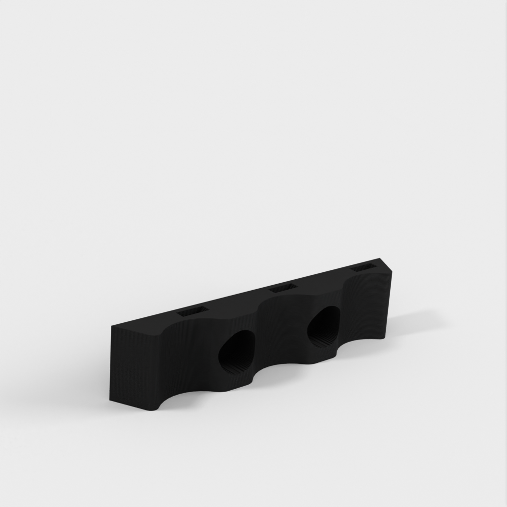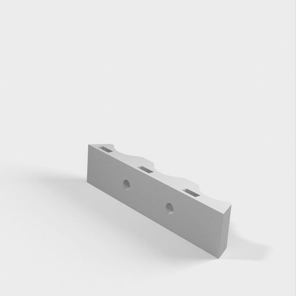 Deze kabelopberger is ontworpen om 2, 3 of 5 kabels op hun plaats te houden. Hij kan op elk oppervlak worden bevestigd met schroeven of plakstrips. Gebruik kabelbinders zoals op de afbeelding om je kabels in sleuven te ordenen.