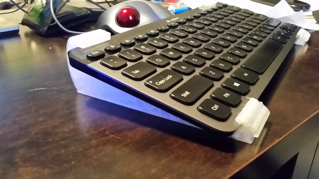Eenvoudige standaard voor Logitech K810 Bluetooth-toetsenbord. De standaard is speciaal ontworpen om het toetsenbord een helling te geven voor meer comfort tijdens het gebruik. Door het draagbare ontwerp van het toetsenbord is de standaard eenvoudig te gebruiken en te vervoeren.